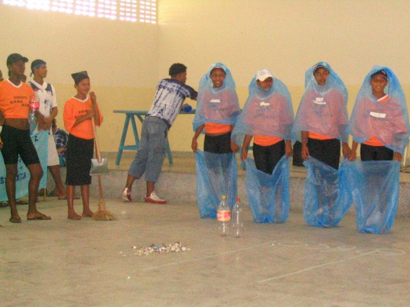 Animação, criatividade, torcidas e muita disposição para vencer as etapas mais difíceis. Este foi o clima que contagiou crianças e adolescentes atendidos pelos programas sociais executados pela Secretaria Municipal de Assistência Social e Cidadania (Semasc) para atender este segmento populacional, que antes tinha apenas as ruas da cidade como alternativa de sobrevivência. As variadas atividades marcam as comemorações alusivas à Semana da Criança e foram realizadas de forma descentralizadas nos Centros de Referência da Assistência Social espalhados pela capital sergipana onde os programas são desenvolvidos. No Centro de Referência de Assistência à Criança, ao Adolescente e à Família Professor Gonçalo Rollemberg Leite, por exemplo, a garotada participou da II Gincana Cultural. Elas se dividiram em equipes para realizar as diversas tarefas. A criatividade foi o ponto chave. Avalange, Bang-Bang, Equipotência, Tropa de Elite, Explosão e Supercussão foram as nomenclaturas escolhidas pelos próprios adolescentes para identificar as equipes adversárias. Cada equipe tentou animar da melhor forma trazendo para o palco apresentação de danças, faixas e cartazes, arrancando emoção da platéia que respondia com aplausos a cada gesto dos garotos integrantes do rol de brincadeiras. Todas as equipes levaram a sério o lema: vencer. A Gincana teve inicio com apresentações teatrais abordando o tema Meio Ambiente. A equipe Supercussão, composta pelos adolescentes que fazem parte da Oficina e Percussão, entoou o ritmo da festa com o embalo dos tambores e atabaques. Em todas as equipes, os adolescentes esbanjaram criatividade. Quanto às questões relacionadas ao meio ambiente, as crianças e adolescentes desenvolveram um teatro de bonecos retratando a realidade do Rio São Francisco, a transposição de suas águas e da tribo indígena Xocó, que vive às margens daquele rio. Outros destacaram a importância da coleta seletiva do lixo e da reciclagem e outros relacionaram a poluição dos recursos hídricos ao segmento industrial. Durantes as tarefas, os educadores sociais avaliaram o desempenho de cada grupo levando em consideração a criatividade, a expressão, a desenvoltura, figurino e originalidade. John Lenon Santos, 15, da Equipe Explosão, não esconde a ansiedade. Estou otimista, tenho certeza que vamos ganhar essa disputa, diz. É uma disputa só para divertir não tem clima de rivalidade, complementa o garoto, compreendendo o espírito esportivo das competições. Sheilane Maria Bezerra de Jesus, 15, também se diz otimismo. Minha equipe se preparou para vencer, espero que a gente faça uma bela apresentação, diz Sheilane, sorridente e ansiosa. Para a coordenadora do Projeto Criança Cidadã, Carla Vanessa Dória, essa gincana recreativa é um meio dos adolescentes se divertirem e refletirem com essas atividades lúdicas, recreativas, esportivas e culturais. Estamos abordando temáticas que despertam conhecimentos nos adolescentes, observa. Ao mesmo tempo que os adolescentes se apresentam, eles adquirem conhecimentos, justifica.