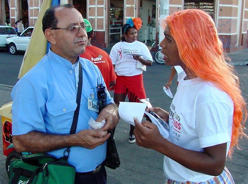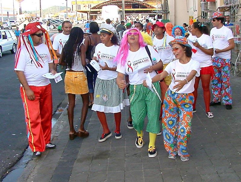 Em continuidade à programação da semana destinada a luta mundial contra a Aids, a Secretaria Municipal de Saúde (SMS) promoveu hoje no Centro comercial de Aracaju, uma manifestação pública em exercício da cidadania abordando o tema da campanha deste ano: “Aids e Racismo: O Brasil tem que viver sem preconceito”. A marcha teve início às 16 horas, tendo como público alvo os transeuntes do comércio da capital, onde foram disponibilizados preservativos e material informativo. Já às 19 horas os agentes de saúde estarão na feira livre do conjunto Augusto Franco, onde o material também será distribuído. De acordo com Virgínia Lúcia Menezes, coordenadora de arte e educação em saúde do Centro de Educação Permanente da Saúde, através da SMS está sendo desenvolvida uma série de atividades para mobilizar a população nessa luta contra o preconceito. “Amanhã iremos realizar a grande caminhada, mostrando pela primeira vez à população um novo tema que reúne dois ícones de maior repercussão de preconceito no Brasil”. Participaram do evento cerca de 20 agentes de Projetos da SMS, projeto de Educação Permanente em Saúde, Projeto teatral “A arte de prevenir é melhor que remediar”, além do IEC – Informação, Educação e Comunicação. Programação: 6h45- Academia da Cidade – Atividade Física – Coordenação Professor Valter Local: Praça Ulisses Guimarães – Bairro Santos Dumont PRAÇA FAUSTO CARDOSO 8h00- Abertura do Espaço da Cidadania Produtos das ONGs/ Produtos da Secretaria Municipal da Saúde Oferta de preservativos, material informativo e aferição de pressão arterial 8h15- Abertura do Projeto Cultural (SMS/ SEMASC) Painel Coletivo de Artes Popular (grafiteiros, painéis) 8h45- Apresentação do Grupo Peneirou Xerém 10h30- Apresentação do Grupo Samba de Coco 16h00- Apresentação do Grupo A arte de prevenir é melhor que remediar do CEPS/ SMS, com a peça: A escolinha da professora Raimunda 14h00- Concentração na Praça da Bandeira 15h15- Saída (Av. Barão de Maruim, Av Ivo do Prado e Praça Fausto Cardoso) 16h45- Chegada da caminhada na Praça Fausto Cardoso 17h30- Show musical 18h00- Encerramento