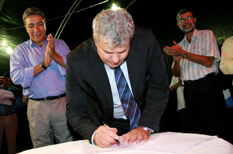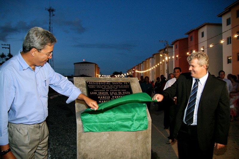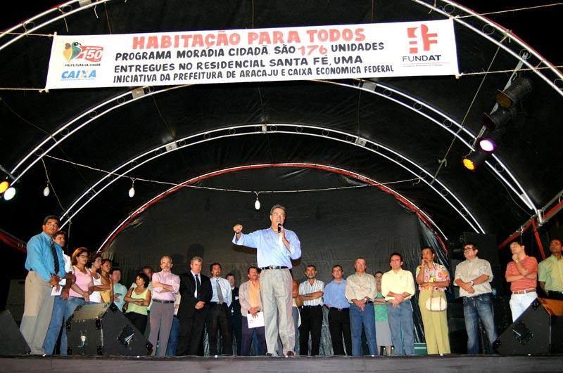 A Prefeitura de Aracaju e a Caixa Econômica Federal (CEF), realizaram na noite de ontem o sonho da casa própria para mais 176 famílias aracajuanas. A entrega do novo Residencial Santa Fé, um condomínio de apartamentos com quadra, parque infantil, área de lazer e estacionamentos privativos para carros, foi feita à comunidade pelo prefeito Marcelo Déda com a presença do superintendente nacional de Parcerias e Apoio ao Desenvolvimento Urbano da Caixa, Paulo Galli. Além da inauguração, o prefeito e o superintendente nacional da Caixa Econômica assinaram a autorização para que o novo Residencial Poxim, que contará com mais 160 apartamentos e deverá ficar pronto em cerca de um ano seja construído. Até agora, a prefeitura já beneficiou 4.432 famílias e gerou 9.100 empregos num investimento de aproximadamente R$ 124 milhões feito nas pequenas e médias empresas da capital pelo Governo Federal através da CEF. No final de março deste ano, a administração municipal já vai ter entregado 6.002 residências através do Programa de Arrendamento Residencial (PAR). Somadas às 650 casas que estão sendo entregues a famílias que antes viviam em palafitas sobre o mangue na Coroa do Meio, às 300 habitações em construção no bairro Santa Maria, às 40 casas no bairro Santos Dumont e avenida Matadouro para os que perderam tudo nas chuvas de 2004, e às outras 80 do Programa de Habitação de Interesse Social (PSH) que serão construídas em breve, a prefeitura vai chegar à grandiosa marca de 7.172 unidades habitacionais entregues em cinco anos. Esta é a minha ponte; é o trabalho que enche meu coração de orgulho porque dá qualidade de vida ao povo. Não estamos aqui apenas para inaugurar uma obra, mas para inaugurar sorrisos nos rostos das pessoas e um novo tempo na vida de muitas famílias, disse o prefeito. A política tem seus percalços, mas quando a gente tem uma noite como esta, fica nítido que toda a luta para realizar nossos sonhos e o sonho do povo vale à pena, acrescentou. Os novos arrendatários do Residencial Santa Fé Valéria Santana, Fernanda Santos, Marcelo Santos, Tânia de Jesus e Helena Gonzaga, que agradeceu a iniciativa da prefeitura em parceria com a Caixa em nome dos demais, receberam suas chaves das mãos do prefeito Marcelo Déda, do superintendente nacional da CEF, Paulo Galli, do senador Antônio Carlos Valadares e da prefeita de Itabaiana, Maria Mendonça. É um alegria muito grande para a gente ter a tranqüilidade de morar num imóvel próprio e sair do aluguel, disse Helena Gonzaga. Vontade política e compromisso social De acordo com Paulo Galli, que representou o presidente da Caixa Econômica Jorge Mattoso, o Governo Federal investiu em 2005 mais de R$ 9 bilhões em habitação e, para 2006, mais de R$ 10 bi já estão assegurados. Poucas prefeituras do país conseguiram tamanho desempenho nos projetos de interesse social da Caixa quanto a de Aracaju. A vontade política da gestão de Marcelo Déda é evidente e isso prova que quando o poder público quer, há soluções como estas moradias dignas e de qualidade, avaliou. Para o senador Antônio Carlos Valadares, o empreendimento simboliza a visão inovadora de um governo municipal que busca, acima de tudo, atender às necessidades da população mais necessitada. Este ato traduz o comprometimento do prefeito e sua equipe com o programa de governo eleito pelo povo, afirmou. Dos 150 trabalhadores empregados na obra inaugurada ontem, 33 foram capacitados pelos cursos profissionalizantes da Fundação Municipal do Trabalho (Fundat), que sob o comando de seu presidente, Edson Caetano, também coordena o PAR em Aracaju. O prefeito Marcelo Déda fez questão ainda de frisar que o sucesso do Programa de Arrendamento Residencial é fruto da luta do presidente da República, Luiz Inácio Lula da Silva, para manter o programa em funcionamento. Na capital sergipana, a ação decidida da prefeitura, que abriu mão de seus impostos para facilitar a edificação das residências e, junto com a Câmara de Vereadores mudou a legislação para expandir o programa, foi fundamental. Quando nós chegamos, o PAR do conjunto Santa Teresa, que era destinado apenas aos funcionários da prefeitura, tinha 60% dos imóveis desocupados. Hoje, basta anunciar abertura de inscrições e as filas já se formam. Isso é resultado da credibilidade que conseguimos imprimir ao programa, explicou Marcelo Déda. Além das autoridades já citadas, o vice-prefeito Edvaldo Nogueira; a primeira-dama Eliane Aquino, os prefeitos Pedro Barbosa (Boquim) e Ascendino Souza (Areia Branca); o vice-prefeito da Barra dos Coqueiros, Sissinho Moura; o superintendente da CEF e o gerente de Desenvolvimento Urbano da instituição em Sergipe, Gilberto Occhi e Hélio Faria; o gerente geral da Fafem, Rosildo Silva; os deputados estaduais Francisco Gualberto e Ana Lúcia; os vereadores Conceição Vieira, Emmanuel Nascimento, Sérgio Góes e Iran Barbosa; o presidente municipal do PSB de Aracaju, Valadares Filho; e diversos secretários municipais participaram da inauguração.