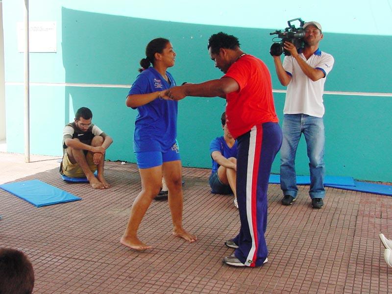 Muita música, ginga e aprendizagem. Assim foi marcada a manhã dos alunos do Centro de Apoio Pedagógico para Atendimento de Portadores de Necessidades Visuais (CAP), que participaram de uma aula experimental de capoeira. O CAP é um espaço inteiramente voltado para uma educação adequada, mantido pela Prefeitura de Aracaju, por meio da Secretaria Municipal de Educação (Semed). A aula faz parte do projeto pioneiro Arte de fazer bem capoeira inclusiva e terapêutica, idealizado pelo sergipano, mestre Beija-flor. Pratico a arte da capoeira há 27 anos e há 10 venho desenvolvendo esse projeto em vários Estados e cidades de todo o Brasil. O trabalho de inclusão feito com portadores de necessidades especiais ajuda a aumentar a coordenação motora, os reflexos e a socialização de crianças, jovens e adultos, informou. Além de ministrar aulas para os portadores de necessidades especiais, o professor também realiza cursos. Esse é um trabalho muito gratificante e que faço com muito carinho e dedicação. O meu intuito é formar através de curso, cada vez mais multiplicadores dessa arte, para que mais e mais pessoas que portam necessidades especiais possam ter a oportunidade de ter aulas como essas, destacou o mestre Beija-flor. A aula de capoeira trabalha com a respiração, consciência corporal, a auto-estima, o conhecimento e a confiança. A maior deficiência é o preconceito. Essa aula permite mostrar aos alunos e à sociedade que todos são capazes. Adorei o convite do CAP, foi uma experiência maravilhosa estar aqui com os alunos e receber esse carinho e confiança, finalizou o professor. CONTATO Para saber mais sobre o projeto Arte de fazer bem capoeira inclusiva e terapêutica pode entrar em contato com o mestre Beija-flor através dos e-mails: beijaflor@pop.com.br ou mestrebeijaflor@hotmail.com.