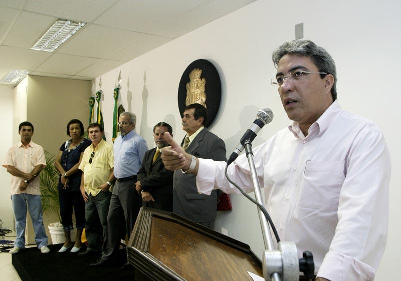O prefeito de Aracaju, Marcelo Déda, empossou no final da tarde de hoje o novo secretário municipal extraordinário de Participação Popular, Rômulo Rodrigues. A posse, realizada na sala de reuniões do Centro Administrativo Aloísio Campos, marca o reinício das atividades da secretaria, cujo trabalho de inclusão social é dos mais importantes da administração. “A participação popular é o nosso DNA, uma das marcas indiscutíveis da administração de Aracaju. Podemos dizer com tranqüilidade que nunca houve na capital um governo onde a opinião decidida e consciente do povo fosse tão respeitada quanto o nosso”, disse o prefeito. “Rômulo Rodrigues é um patrimônio da militância popular em Sergipe e sua chegada vai fortalecer ainda mais os objetivos de nossa gestão e nossa relação com o povo”. A marca da Secretaria Extraordinária de Participação Popular (Sepp) é referência para a maioria das obras realizadas pela administração municipal. Algumas de suas ações de maior destaque são as reuniões do Orçamento Participativo em todos os bairros de Aracaju, os dois Congressos da Cidade, Orçamento Participativo Mirim e mais recentemente a discussão do Plano Diretor, cujo conceito de debate popular foi extraído da experiência da Sepp. “O ‘participação popular’ é hoje um conceito que permeia todas as áreas da gestão municipal”, afirmou o prefeito Marcelo Déda. As conferências municipais de Saúde debatem temas de interesses da população com a participação efetiva do povo. Os coordenadores das escolas municipais, escolhidos pela própria comunidade escolar e não indicados pelo prefeito como na prática antiga, são outro exemplo da mudança implementada pela Sepp. “A secretaria tem a aprovação do povo de Aracaju, mas agora onde houver a placa com os dizeres ‘esta obra tem a mão do povo’, leia-se ‘esta obra tem a mão, o coração e a alma do povo’”, afirmou o novo secretário, Rômulo Rodrigues, ciente da importância do desafio que enfrentará. Durante a posse ele foi presenteado e homenageado pelo amigo Sérgio Araújo. Rômulo Rodrigues é ex-operário da Nitrofértil, ex-presidente da Central Única dos Trabalhadores (CUT-SE) e um dos mais importantes militantes da esquerda sergipana. Participaram de sua posse o vice-prefeito Edvaldo Nogueira; o deputado estadual Francisco Gualberto; o prefeito de São Cristóvão, José Correia dos Santos; os vereadores Sérgio Góes e Conceição Vieira; o superintendente do Incra-SE, Antônio Carlos Fontenelli, secretários, servidores municipais e diversas autoridades.