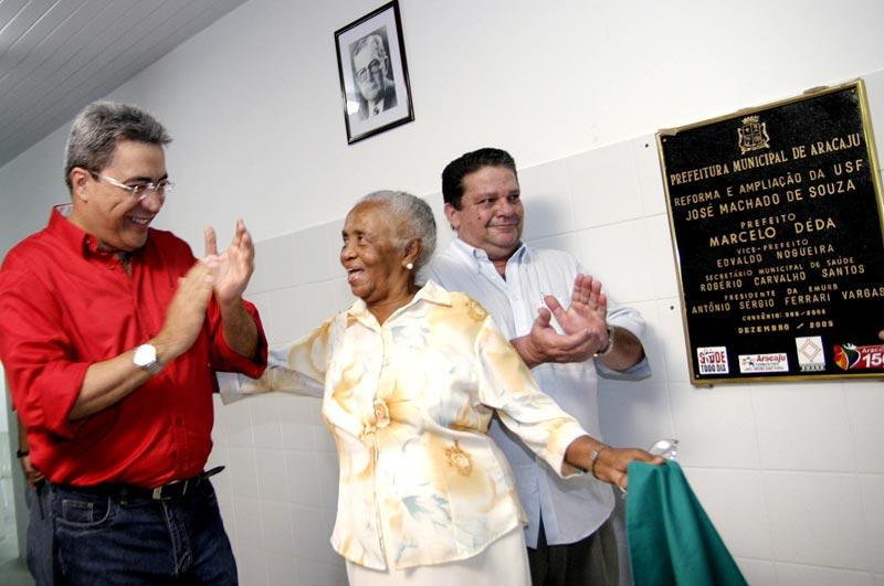 O prefeito de Aracaju, Marcelo Déda, entregou na noite de ontem a ampliação e reforma completa da Unidade de Saúde da Família (USF) Dr. José Machado de Souza, no bairro Santos Dumont. Com sua capacidade de atendimentos odontológicos triplicada e com o aumento do número de Equipes de Saúde da Família (ESF) de quatro para seis, a unidade e seus 14 consultórios médicos, salas de vacina, aerosol, curativos e farmácia é um verdadeiro presente de Natal à comunidade do bairro mais populoso da capital. "Nossa administração prioriza o povo trabalhador de Aracaju. Este é o resultado do esforço de uma equipe que tem amor pela cidade e compromisso com o povo", disse o prefeito após descerrar a placa de inauguração ao lado dos filhos do patrono da unidade, João Barreto de Souza e Carlos Barreto, do vice-prefeito Edvaldo Nogueira, do deputado federal Jackson Barreto e de Maria Marques, conhecida como dona Arlete, uma das moradoras mais antigas da região. Durante a reforma, o atendimento à população estava sendo realizado na USF Renato Mazze Lucas, no próprio Santos Dumont, que foi reformada e ampliada pela administração de Marcelo Déda em 2004. Mais de 90% das unidades de saúde do município já sofreram intervenções da prefeitura e agora restam apenas as inaugurações das últimas quatro reformas e ampliações que a PMA já está realizando. Ao dar dignidade, conforto e qualidade de serviços de saúde à população nos postos em cada bairro de Aracaju, a prefeitura também está resolvendo um antigo problema da cidade: a descentralização desorganizada antes existente nos serviços de urgência e emergência. Isto porque, ao retirar o funcionamento 24 horas das USF´s como a do bairro Santos Dumont, a administração revolucionou o sistema de saúde com o Serviço de Atendimento Municipal de Urgência (Samu) e no ano que vem vai inaugurar dois pronto-socorros (nas zonas Norte e Sul) com 60 novos leitos para atendimentos emergenciais. "Não adiantava nada deixar os postos funcionando 24 horas sem capacidade alguma de resolução. Hoje eu tenho orgulho de ver que até os mais ricos, os que podem pagar planos de saúde, recorrem ao Samu quando têm qualquer problema", contou o prefeito. "Enquanto infelizmente no interior do estado a regra tem sido fechar hospital, aqui em Aracaju a regra é abrir cada vez mais para dar saúde à nossa gente", acrescentou ele, ao classificar o patrono José Machado de Souza como um dos maiores pediatras de Sergipe. Um das principais marcas do trabalho dedicado da prefeitura à vida com qualidade dos aracajuanos é a redução de 35 para 23 mortes a cada mil, ou seja, 35%, no índice de mortalidade infantil da capital. "Nossa tarefa em Aracaju tem sido a defesa da vida, o maior milagre que representa a presença de Deus no mundo. Este é um governo que produz vida com transparência, compromisso social e ética", disse o secretário municipal de Saúde, Rogério Carvalho. A educação continuada dos profissionais de saúde do município, a construção de cinco Centros de Apoio Psicossocial (CAP´s) e da urgência psiquiátrica para mudar o conceito de tratamento de doentes mentais, a cobertura de 88% da população com Equipes de Saúde da Família e a informatização de 100% do sistema municipal de Saúde são algumas das transformações realizadas pela administração do prefeito Marcelo Déda. Para o deputado federal Jackson Barreto, a nova USF Dr. José Machado de Souza é a prova inconteste do amor e atenção que a Prefeitura de Aracaju tem dedicado ao bairro Santos Dumont. "Quem cuida da saúde cuida de seu povo naquilo que ele tem de mais essencial. Cada obra realizada aqui deixa o meu coração mais feliz e, sem dúvida, hoje posso afirmar que Rogério Carvalho é uma das maiores revelações que esta administração produziu", afirmou. A comunidade do Santos Dumont foi representada pelo vice-presidente do Conselho Local de Saúde, Nilton Santos, que agradeceu pela obra e disse estar orgulhoso do trabalho realizado pelo prefeito Marcelo Déda na cidade. "A população reconhece o exemplar trabalho dessa administração em Aracaju", disse ele. Além das autoridades já citadas, o superintendente do Ibama-SE, Márcio Macedo; o ex-prefeito de Tobias Barreto, Esdras Valeriano; o presidente do Conselho Municipal de Saúde, Régis Barbosa; o presidente do Conselho Local, Bartolomeu Bezerra; a coordenadora da 4ª Região de Saúde, Cristiane Melo; o presidente da Acudicria, Joel Partrício; e diversos vereadores e secretários municipais participaram da inauguração animada pelo show da banda Mania de Ser.