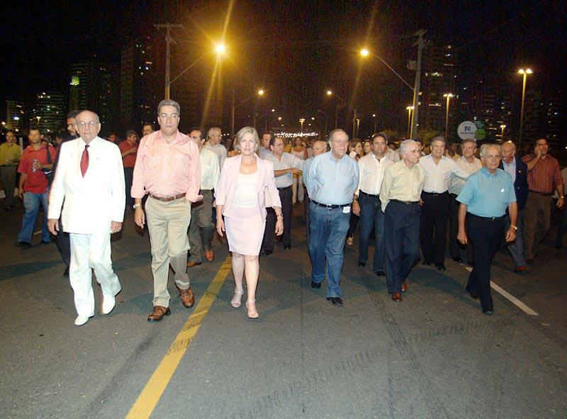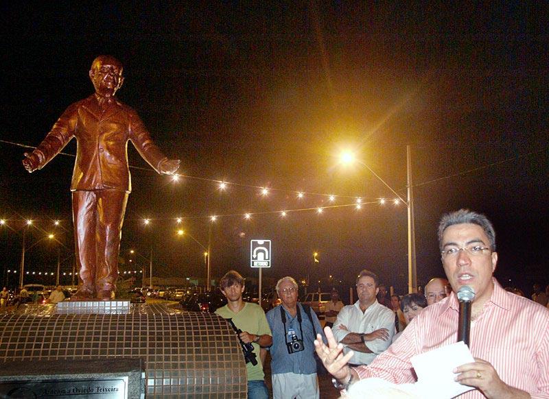O prefeito de Aracaju, Marcelo Déda, inaugurou na noite de ontem a nova avenida Oviêdo Teixeira, que vai ligar as avenidas Sílvio Teixeira e Tancredo Neves nos bairros Jardins e Inácio Barbosa, respectivamente. Os 1.050 metros de extensão da nova via que homenageia um dos maiores empresários sergipanos foram construídos numa parceria entre a prefeitura da cidade e as construtoras Celi e Norcon. À prefeitura coube o asfaltamento de toda a pista de 17 mil m², ou seja, aproximadamente 35% do investimento realizado. Às construtoras, proprietárias de terrenos na região em que está a avenida, coube a abertura da estrada, a realização da drenagem e implantação da base para o asfalto. Um monumento ao “sujeito” Oviêdo Teixeira, expressão que ele próprio costumava usar, foi erguido pelo artista plástico chileno Willy Valenzuela no jardin central da avenida, cujo paisagismo foi feito por Aparecida Teixeira. “Esta avenida traduz uma nova relação do poder público com a classe empresarial sergipana. Esta via é importantíssima e de sua utilidade ninguém duvida, mas num governo em que a prioridade é os mais pobres, não havia recursos para construí-la neste momento”, explicou o prefeito, para quem a obra é um verdadeiro monumento à responsabilidade social das construtoras Norcon e Celi. Foi firmada então a parceria com as empresas para execução da obra da pista que vai proporcionar o crescimento da cidade e conseqüente arrecadação de tributos ao município, além de acesso fácil ao Parque da Sementeira. “Nós trabalhamos em busca do equilíbrio, sempre mediando todo e qualquer interesse privado pelo prisma do interesse público. Está aqui a resposta deste governo aos que temiam uma relação tencionada negativamente com a classe empresarial”, disse Marcelo Déda. Homenagem a Oviêdo Teixeira A noite de inauguração foi marcada pela homenagem ao empresário e político itabaianense Oviêdo Teixeira, ex-presidente e fundador da Câmara de Diretores Lojistas (CDL) e ex-presidente também da Associação Comercial de Sergipe. Nascido em 9 de abril de 1910 e morto em 2 de julho de 2001, Oviêdo foi um dos fundadores do partido do Movimento Democrático Brasileiro (MDB) na luta contra a ditadura militar. “A vida pública nos impõe certos rituais, mas há momentos em que a alegria transcende a obrigação do cargo e este é um deles. Oviêdo Teixeira traduz o verdadeiro significado da sergipanidade, é a encarnação do verdadeiro empreendedor: cordial para promover o diálogo da razão com o coração, solidário a milhares de pessoas, ativista político consciente e um otimista embasado acima de tudo”, resumiu o prefeito. Ele sancionou o projeto de lei de autoria do ex-vereador Antônio Samarone, aprovado por unanimidade na Câmara de Vereadores, para dar o nome de Oviêdo Teixeira à nova avenida. “Isto não é nenhum favor, mas o reconhecimento do poder público à vida de um homem que reunia tantas qualidades coletivas do povo sergipano”, finalizou Marcelo Déda. Um dos filhos do homenageado, o empresário Tarcísio Teixeira, falou em nome de toda a família, amplamente representada pelos seus irmãos José Carlos Teixeira, secretário de estado da Cultura; Ana Lira; Maria Celi; e Luiz Antônio, João e José Carlos Teixeira. O irmão de Oviêdo Teixeira, Elpídio Teixeira, também prestigiou a inauguração junto com genros, noras e netos do homenageado. “Oviêdo trabalhou pelo engrandecimento de sua pátria e de seu povo, demonstrando sempre seu desprendimento, verdadeiro sentido de sua vida”, disse Tarcísio. O presidente da CDL, Gilson Figueiredo, e o representante da Associação Comercial, Jorge Santana, prestaram suas honras a Oviêdo Teixeira. “Ele semeou ética, honestidade”, enfatizou Figueiredo. “Ele dedicou sua vida ao empreendedorismo, mas, acima de tudo, ao associativismo solidário”, complementou Santana. O ex-governador do Rotary, o radialista Carlos Magalhães, também homenageou o rotariano Oviêdo Teixeira, que chegou a presidir o Rotary Aracaju em 1973. “Vemos aqui celebrar a vida de um símbolo do otimismo e da felicidade”, disse. Inauguração prestigiada Muitas autoridades e empresários sergipanos participaram da inauguração da avenida Oviêdo Teixeira. Dentre eles o vice-prefeito Edvaldo Nogueira; a primeira-dama Eliane Aquino; a presidenta do TJ-SE, Marilza Maynard; os ex-governadores Albano Franco e Seixas Dória; o presidente da Câmara de Vereadores, José Ramos da Silva; os prefeitos de Canindé, Orlando Andrade, e de Itabaiana, Maria Mendonça; o ex-prefeito João Augusto Gama; os conselheiros do TCE, Carlos Pinna e Antônio Dantas; os deputados federais Jackson Barreto e João Fontes; além de deputados estaduais, secretários municipais e vereadores.