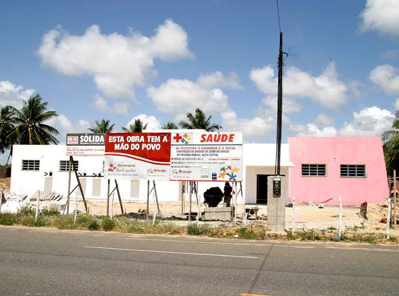 Em breve a população aracajuana receberá da Prefeitura de Aracaju mais uma grande obra na área social. Trata-se da nova unidade de saúde da família, localizada no povoado Robalo, zona Sul da cidade. A obra que foi solicitada pela comunidade através de plenárias do Orçamento Participativo contará com instalações amplas e modernas. Além de beneficiar os moradores do Robalo, o posto de saúde também atenderá aos moradores do povoado São José e do bairro Aruana, incluindo os residentes nos imóveis do Programa de Arrendamento Residencial (PAR). A obra que está em fase de acabamento, tem previsão para ser entregue entre os meses de fevereiro e março. De acordo com o encarregado de obras da Sólida Construções Ltda, Manoel Santos, a equipe vem executando com eficiência os diversos serviços no prédio para cumprir o cronograma. No momento estamos fazendo a pintura de todo o prédio, assentando as portas e colocando as louças sanitárias. Também já começamos a levantar o muro que ficará ao redor do posto, informou Manoel Santos, adiantando que na próxima semana os funcionários darão início à pavimentação externa do local, onde ficará o estacionamento. O futuro posto de saúde contará com gabinete odontológico, sala de aerosol, farmácia, sete consultórios, salas de esterilização, vacinação, observação, curativo, salas administrativas, de reuniões, de espera e recepção. Além de banheiros masculinos, femininos e banheiros para portadores de necessidades especiais, bem como sala de utilidades, depósito, área de serviço, copa-cozinha, lixeira e resíduos, e áreas para jardins. O valor da obra é de R$ 447.299,99. A prefeitura ainda colocará à disposição das comunidades três equipes de PSF, formadas por médicos, enfermeiros, auxiliares de enfermagem, dentistas e um assistente social, além do pessoal de apoio.