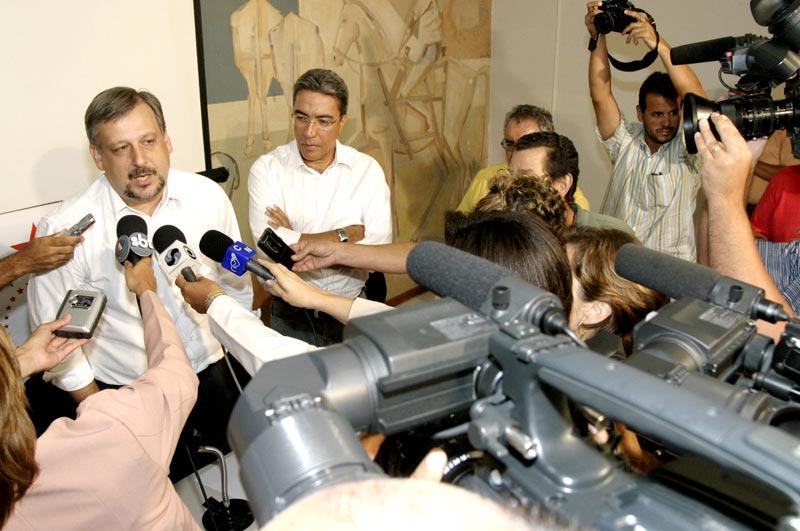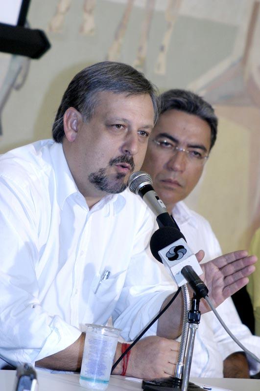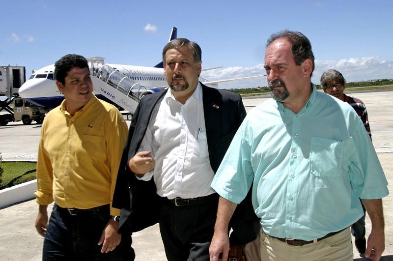 O prefeito de Aracaju, Marcelo Déda, recepcionou no início da tarde de hoje o presidente nacional do Partido dos Trabalhadores (PT), Ricardo Berzoini, no aeroporto da capital. Ex-ministro da Previdência Social e também do Trabalho, Berzoini está na cidade para participar de reuniões com os membros estaduais do PT e inaugurar às 18 horas a nova sede do partido, localizada na avenida Ivo do Prado, nº 100. Acompanhado do vice-prefeito Edvaldo Nogueira; do secretário de Articulação Política da Prefeitura de Aracaju, ex-senador e ex-presidente da Petrobras, José Eduardo Dutra; e dos presidentes estadual e municipal do PT, Márcio Macedo e Chico Buchinho, Berzoini concedeu entrevista coletiva à imprensa ainda no auditório do aeroporto, de onde seguiu para um almoço. Às 16 horas todos participarão de uma reunião fechada com membros dos diretórios de Aracaju, de outros municípios sergipanos, e também o estadual já na nova sede do partido. Em seguida o espaço será inaugurado e às 21h vai acontecer um jantar de adesão com convidados do PT na sede da Associação dos Engenheiros Agrônomos do Estado de Sergipe (Aease). O assessor especial da Secretaria Geral da Presidência da República, Sílvio Santos; os presidentes do PT dos municípios de Nossa Senhora do Socorro, Washington Pereira, e de Divina Pastora, Bruno Sá, e o vereador Pedrinho Andrade também recepcionaram o presidente nacional do PT no aeroporto.