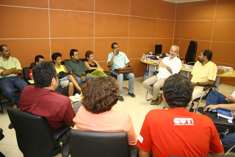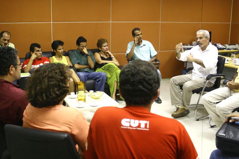 A direção estadual da Central Única dos Trabalhadores (CUT) visitou, no final da tarde de ontem, o prefeito de Aracaju, Edvaldo Nogueira, em seu gabinete no Centro Administrativo Aloísio Campo. Estiveram presentes representantes de diversos segmentos de classes trabalhadoras. O presidente estadual da CUT, Antônio Carlos Góes, informou que foi uma visita de cortesia. Mas com o objetivo também de buscar estabelecer uma relação mais direta com o município, no que diz respeito a definição das políticas públicas, na relação com os próprios servidores. Pelo histórico de militância do prefeito Edvaldo Nogueira, ele não colocou nenhum obstáculo para que possa estabelecer esses canais. Foi um encontro produtivo, vários indicativos foram colocados para que pudesse haver determinados espaços na definição de políticas para os trabalhadores de Aracaju, relatou. O prefeito confirmou a intenção de manter uma boa relação com as entidades de classe. A CUT veio fazer uma visita de cortesia para que a gente possa cada vez mais estreitar os laços da prefeitura de Aracaju com o movimento social organizado, resumiu Edvaldo Nogueira. Para o secretário geral da CUT, José Souza, a reunião teve um significado ainda maior. Foi uma visita histórica, pois nunca houve nenhum outro prefeito da capital que tenha recebido a CUT. Em outros momentos éramos convidados a nos retirar, pois a CUT não era bem-vinda. Hoje viemos conversar, para criar um canal de diálogo para quando precisar a gente tentar resolver a divergências da melhor maneira possível e com respeito, relatou.