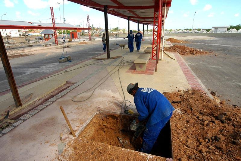 Após um mês de estudos e trabalho intenso, a estrutura metálica do terminal de ônibus Zona Oeste Leonel Brizola, que está sendo construído pela Prefeitura de Aracaju, foi totalmente recuperada. No final de janeiro passado, a estrutura numa das plataformas cedeu, prejudicando o andamento da obra que está sob a responsabilidade da empresa SPR Engenharia. À época o prefeito de Aracaju em exercício, Edvaldo Nogueira, havia determinado à Superintendência Municipal de Transportes e Trânsito (SMTT) as providências imediatas para resolução do problema. Engenheiros encaminhados pelo Conselho Regional de Engenharia e Arquitetura da Bahia (CREA-BA), Carlos Emílio Strauch e Jorge Fortes Filho, a pedido da SMTT, fizeram a primeira vistoria na área e confeccionaram um laudo técnico que determinou as causas do acidente. No início desta semana, o engenheiro Eduardo Lobão Fontes, da SPR Engenharia, empresa responsável pelo trabalho, informou que a equipe está trabalhando atualmente nos novos pilares. “Estamos escavando para colocar os pilares de reforço, para que não aconteça mais nenhum imprevisto. A preocupação desse trabalho é garantir conforto e segurança para os usuários deste local e é nisso que estamos investindo”, garante. “Teremos bases de concreto e estrutura metálica para assegurar a estrutura da cobertura do local”, afirma o engenheiro. Ele informou também que está sendo finalizada a colocação do piso, que será colorido e de alta resistência. Além disso, o terminal contará com piso tátil, que facilitará o acesso aos portadores de deficiência visual. São 20 homens trabalhando na execução da obra que custará R$ 1,5 milhão e terá uma lanchonete, banheiros, fraldário, duas bilheterias de entrada e saída, fiscalização, quatro quiosques e ponto de táxi. “Já temos 95% da área externa concluída, faltando apenas alguns detalhes. Na área interna são 90%, restando apenas o término dos pilares e pisos”, esclarece. O novo terminal, com 13 mil metros quadrado, quando concluído será o maior da cidade. Ele estará interligado com o Terminal Rodoviário José Rollemberg Leite. "Esse trabalho vai oferecer comodidade e segurança às pessoas que vierem do transporte intermunicipal, interestadual e do Sistema de Transporte Integrado da grande Aracaju (SIT)”, declara Eduardo.