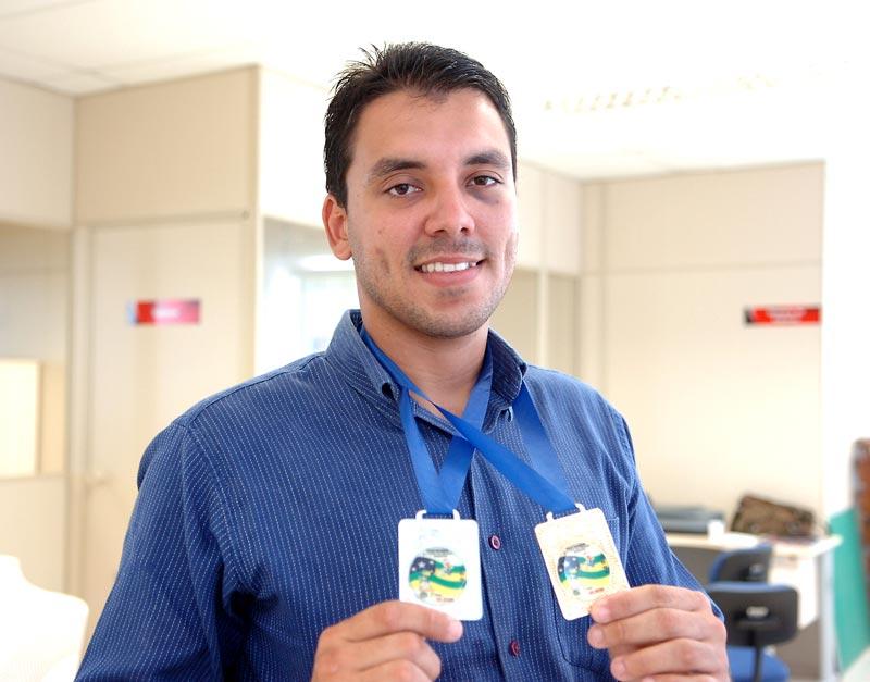 O atleta sergipano de taekwondo e integrante da Guarda Municipal de Aracaju, Geandson Viana dos Santos, conquistou no último dia 26 mais duas medalhas na modalidade que pratica. Desta vez, foi o 1º lugar em Luta Kyorigui e 2º lugar em Luta Imaginária. Realizadas na quadra do Colégio Intelectus, as lutas fizeram parte da 1º etapa do Circuito Sergipano de Taekwondo. Com apenas 26 anos, o atleta disse que já acumula mais de 70 títulos em competições esportivas. Se eu ganhar mais um título, serei campeão antecipado do campeonato sergipano. Estou me preparando para a Copa Brasil/Nordeste de Taekondo, que será realizada no próximo mês de maio aqui em Sergipe, com data a ser definida, afirmou Geandson. Atleta há 14 anos, com um treinamento de duas horas por dia, três vezes por semana, Geandson guarda em casa e na lembrança, as medalhas de bi-campeão internacional 2003/2004, campeão sul-americano 2004, bi-campeão brasileiro 2002/2005, hexacampeão norte-nordeste 1997/1999/2000, entre outras.