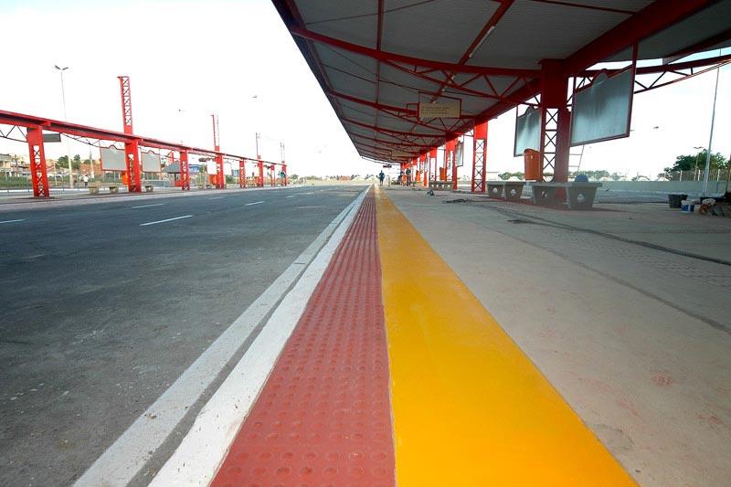 Para garantir maior conforto e segurança aos usuários do transporte urbano da capital, a Prefeitura de Aracaju, através da Superintendência Municipal de Transportes e Trânsito (SMTT), está finalizando os serviços do novo Terminal de Integração Leonel Brizola, situado na Zona Oeste da cidade. O novo terminal será interligado com o terminal José Rollemberg Leite, facilitando o acesso de pessoas que utilizam o transporte intermunicipal e interestadual. De acordo com o encarregado da obra, Anfrízio José Santos, da SPR Engenharia, a obra já está quase finalizada. As lâmpadas, bancos e lixeiras já foram instalados. Agora estamos finalizando apenas os últimos detalhes, como limpeza e revisões, explica o encarregado. Ele ressalta ainda que o único serviço que ainda está sendo realizado é a colocação das tampas metálicas dos canais de esgoto, executadas pela empresa Servi Mar. O novo terminal tem 13 mil metros quadrados de área. Vai contar com lanchonete, banheiros, fraldário, duas bilheterias de entrada e saída, fiscalização e quatro quiosques. Como nos outros terminais já recuperados pela prefeitura, este também contará com painéis decorativos de artistas locais. A temática escolhida foi Transportes, com obras dos artistas plásticos José Fernandes e Adauto Machado. O terminal conta ainda com ponto de táxi e uma estrutura metálica que garantirá a proteção dos usuários contra o sol e as chuvas. O local também vai atender os portadores de necessidades especiais com rampas de acesso para os deficientes motores, além de piso tátil e inscrições em Braile para os deficientes visuais. Segundo Anfrízio, toda a estrutura do terminal já foi avaliada e reforçada com a colocação de novos pilares. A prova já foi realizada para testar a resistência da nova estrutura, comenta. Foram colocados pesos em cima da estrutura de todo o terminal e a equipe de topógrafos constatou que não houve nenhuma alteração, informa o engenheiro.
