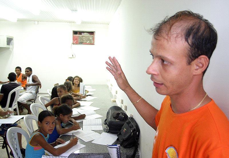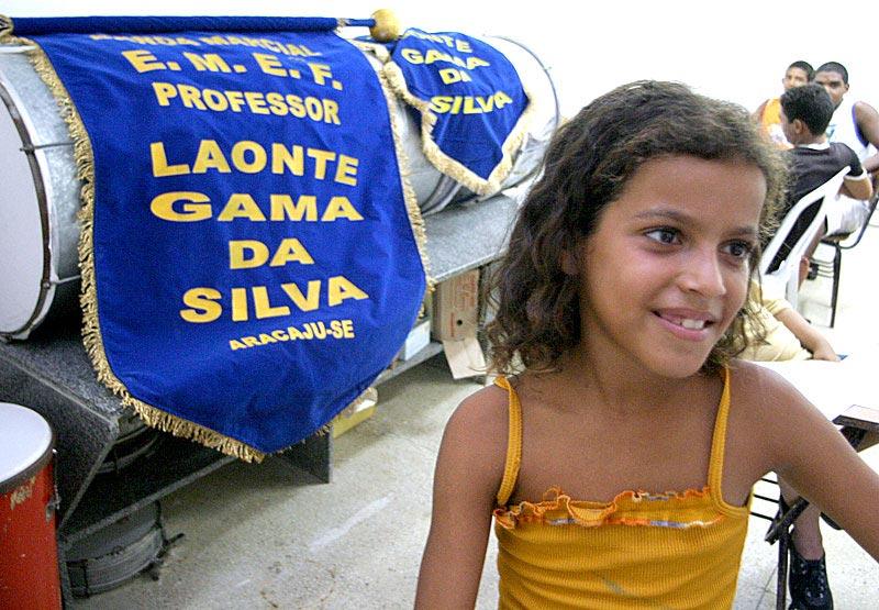 Alunos da Escola Municipal de Ensino Fundamental (EMEF) Laonte Gama, no bairro Santa Maria, estão aperfeiçoando seu aprendizado na área musical. O projeto que introduziu a música no currículo escolar teve início em 2003 e agora acontece em parceria com a Escola Municipal de Artes Valdice Teles. Além de oferecer uma alternativa para os estudantes, as aulas também ajudam a manter a banda marcial da escola como uma das melhores do município. As aulas acontecem segundas, quartas e sextas-feiras, atendendo dois grupos diferentes: os iniciantes, com as aulas de teoria musical e os avançados, com a parte prática. Atualmente cerca de 15 alunos da 2ª, 3ª e 4ª séries cumprem essa primeira fase, na qual aprendem a ler e reconhecer os valores das notas musicais. Segundo o professor e maestro Reinaldo de Oliveira, essa é a sua primeira turma e, apesar de certa dificuldade do conteúdo, os alunos têm mostrado um bom aprendizado. Essa é a parte inicial, é a base. Depois dessa parte introdutória, os alunos estarão aptos para aprender a tocar qualquer tipo de instrumento, informou o professor. Eles têm vontade de aprender, pois estão doidos para pegar os instrumentos e dentro de um mês vão estar prontos para isso, acrescentou. A ansiedade de tocar um instrumento é confirmada pela pequena Mayra Passos, 10, que retomou o curso iniciado no ano passado. A aula é boa e eu estou conseguindo aprender as notas para tocar trombone, mas quero aprender a tocar pratos para participar da banda, comentou a aluna, referindo-se à premiada banda marcial da escola. O caso do estudante da 5ª série Maurício Santos, 15, é um pouco diferente. Para ele as aulas de teoria musical servem como um aperfeiçoamento para o que ele já aprendeu e utiliza nos ensaios da banda da escola. O professor me indicou as aulas como um reforço e está sendo fácil para mim, porque eu já estudei antes, disse o jovem, que sonha ser também um maestro.