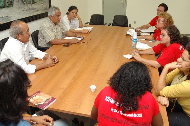 Uma comissão do Sindicato dos Profissionais do Magistério do Município de Aracaju (Sindipema) foi recebida na tarde de ontem, quinta-feira, pelos secretários municipais Bosco Rolemberg (chefe de Gabinete), José de Oliveira Júnior (Finanças), Francisco Dantas (Administração), Sílvio Santos (Governo) e Tereza Cristina da Graça (Educação). Na ocasião, a administração municipal apresentou uma resposta ao ofício encaminhado pelo Sindicato solicitando uma resposta sobre um índice de reajuste para a categoria. O secretário chefe de Gabinete, Bosco Rolemberg, informou que a administração ainda não concluiu os estudos necessários para a formulação de uma proposta, embora tenha todo o interesse em discutir as outras questões levantadas pelo Sindicato. Embora o prazo limite acordado com o Sindicato se encerre dia 19, nós apresentamos a realidade, as condições de análise do cenário e das nossas efetivas possibilidades que não nos permitem ainda uma definição conclusiva, explicou Rolemberg, enfatizando o compromisso com o respeito à autonomia e independência do movimento sindical priorizado na administração municipal. Histórico de recuperação Buscando sempre a manutenção do diálogo democrático, apelamos para que os dirigentes fizessem uma justa avaliação do momento, historiando e recuperação dos índices de aumento salarial nos últimos quatro anos no município, reafirmando nosso apelo pelo senso de compreensão e de maturidade para enfrentar esse momento, destacou o chefe de Gabinete. Já o secretário de Finanças, Oliveira Júnior, lembrou aos integrantes da comissão que a Prefeitura de Aracaju sempre concedeu, ao longo dos últimos três anos, índices de reajustes superiores à inflação do período. Nos anos anteriores, no caso da categoria do Magistério, houve também a recomposição do valor dos salários pela adequação ao Plano de Carreira, aprovado pela Câmara Municipal em 2001, informou. Ainda segundo o secretário Oliveira Júnior, Aracaju é, dentre as capitais brasileiras, a que tem o maior índice de comprometimento da receita corrente líquida com despesas de pessoal. Portanto, há dificuldades objetivas para a concessão de reajustes.