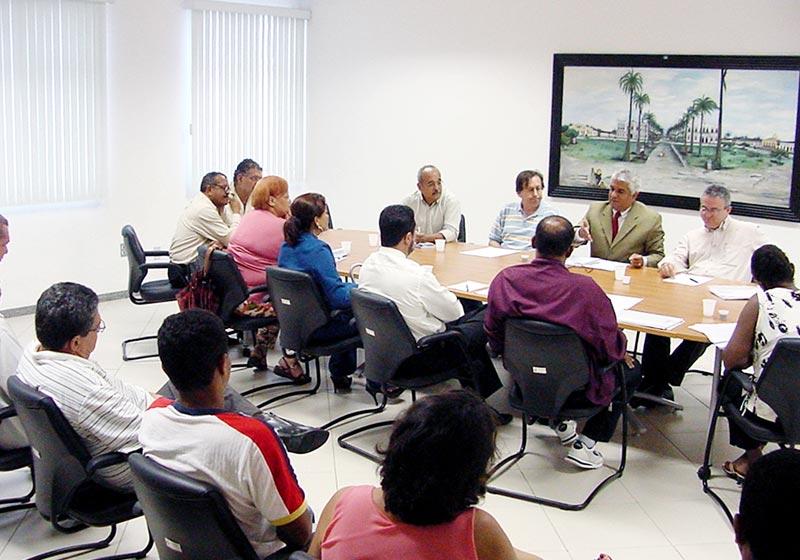Aconteceu nesta segunda-feira, dia 15, a segunda reunião em prosseguimento às negociações entre a Prefeitura de Aracaju e o Sindicato dos Servidores Municipais da Prefeitura de Aracaju (Sepuma). O encontro foi conduzido pela comissão municipal, designada pelo prefeito Edvaldo Nogueira para negociações, composta pelos secretários municipais Oliveira Júnior (Finanças); Sílvio Santos (Governo); Francisco Dantas (Administração) e pelo chefe de gabinete, Bosco Rolemberg. Hoje foram retomadas as discussões da semana passada em torno do reajuste salarial reivindicado pelo Sepuma e segundo o secretário de Governo Sílvio Santos, a administração municipal precisa de mais algum tempo para apresentar um reajuste satisfatório. Há um sentimento do prefeito que esse processo de negociação se dê a bom termo, mas se tivéssemos que apresentar uma proposta hoje, os números atuais não nos permitem um reajuste próximo da reivindicação da categoria, explicou. Ainda de acordo com o secretário, o comprometimento da folha da receita corrente líquida da prefeitura está em 53,8% e a Lei de Responsabilidade Fiscal fala que ele não pode ultrapassar 54%. A comissão vai aprofundar os estudos para no máximo na próxima quarta-feira, dia 17, pela manhã, quando acontece a assembléia geral dos membros do Sepuma, a administração municipal apresentar um índice, completou Sílvio Santos. O presidente do Sepuma, Nivaldo Fernandes, destacou o processo de entendimento entre as partes. Nós tivemos mais uma rodada de negociação e mais uma vez gostaríamos de ratificar a postura do prefeito Edvaldo Nogueira, que tem merecido por nossa parte uma atenção especial. Ficou para na quarta feira, na assembléia, às 9h30, no Instituto Histórico de Sergipe, ser anunciado o percentual de reajuste da prefeitura, informou, acrescentando que também foram tratadas outras questões pontuais, como a liberação dos servidores que comporão a junta eleitoral das eleições do Sepuma do próximo dia 26.
