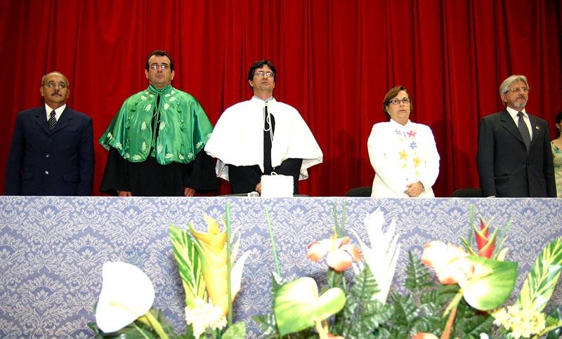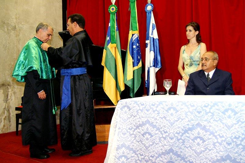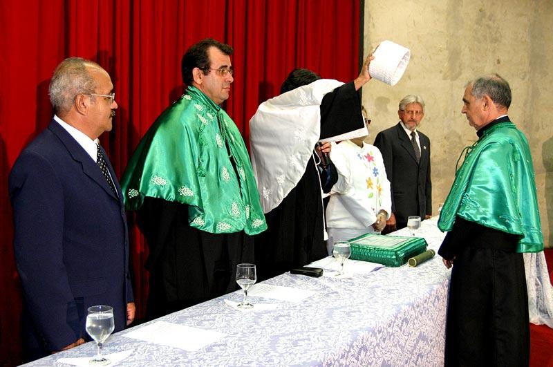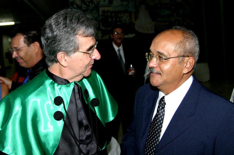 O secretário chefe de Gabinete do prefeito Edvaldo Nogueira, Bosco Rolemberg, participou na noite de ontem, segunda-feira, das comemorações do 38º aniversário da Universidade Federal de Sergipe (UFS). Durante a solenidade, realizada no auditório da Reitoria, o Prof. Dr. Marco Antônio Bardieri foi condecorado com o título de Doutor Honoris Causa da universidade sergipana; o Prof. Antônio Carlos Mangueira Viana com a Medalha de Mérito Cultural, e nove ex-professores da casa com o título de Professor Emérito. A Fundação Oviêdo Teixeira e a funcionária da UFS, Rosemeire Silveira Menezes, foram homenageados com placas. "Juntamente com a chegada da Petrobras, a instalação da UFS foi um dos fatores mais significativos para o desenvolvimento da economia no Estado. O conjunto de fatores que inclui a experimentação científica, a pesquisa e a extensão faz da UFS um centro efervescente na luta de idéias que formou e forma até hoje gestores, pesquisadores e profissionais que dão a base fundamental para que Sergipe cresça. A UFS é uma de nossas grandes fomentadoras do desenvolvimento", avaliou Bosco Rolemberg. Dois momentos foram cruciais nas relações entre a Prefeitura de Aracaju e a UFS desde a administração do ex-prefeito Marcelo Déda até a atual gestão do prefeito Edvaldo Nogueira: o suporte dado ao Hospital Universitário (HU) pelos profissionais da Secretaria Municipal de Saúde (SMS), e a interferência decisiva de Déda junto ao Governo Federal para incluir Sergipe no rol dos Estados que receberiam a expansão universitária para cidades do interior. Além disso, a UFS tem alguns de seus melhores profissionais incorporados à equipe da Prefeitura de Aracaju, a exemplo da secretária municipal de Planejamento, Lúcia Falcón. O reitor da UFS, Prof. Dr. Josué Modesto dos Passos Subrinho, destacou os avanços obtidos pela Universidade nos últimos anos. "A primeira etapa da nova ala do Hospital Universitário está em construção e até o ano que vem teremos 600 membros no nosso corpo docente, dos quais 300 pelo menos com doutorado", disse. Com a construção do Campus Avançado de Itabaiana e a abertura de cursos à distância em 26 municípios no interior do Estado, em 2007 a UFS, cuja cidade universitária leva o nome do ex-prefeito Aloísio de Campos (também homenageado no novo Centro Administrativo da Prefeitura de Aracaju), oferecerá cinco mil vagas em 24 cursos. A deputada estadual Ana Lúcia, o vice-reitor da UFS, Ângelo Antonielli, os membros do Conselho Superior da UFS e outras autoridades participaram do evento. Confira os homenageados com o título de Professor Emérito: - Raimundo Nonato Vieira de Araújo - João Bosco Nery de Moraes - Hyder Bezerra Gurgel - Lídia Mesquita Salviano - Gonçalo Ferreira Melo - José Amado Nascimento - Maria da Glória Santana de Almeida - Maria da Glória Costa Monteiro - Zulmira Freire Rezende