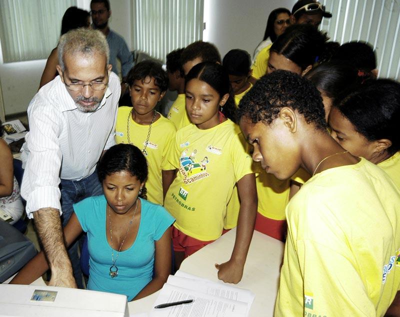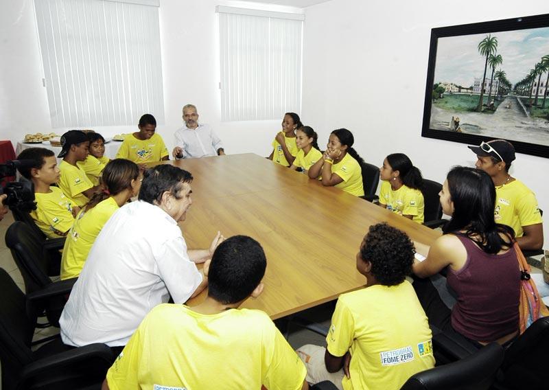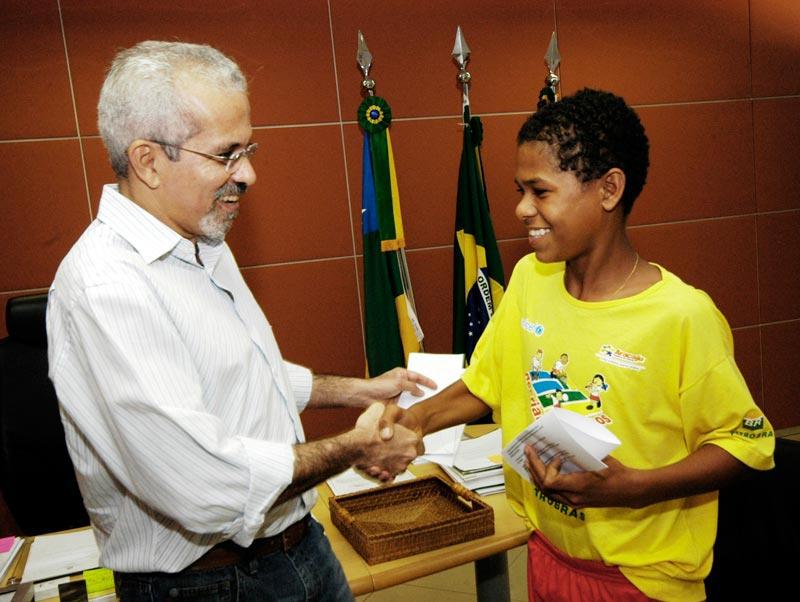 Um grupo de crianças e adolescentes do bairro Santa Maria entregou na manhã dessa sexta-feira, dia 21, o fanzine ´Se Liga!´ sobre a vida em sua comunidade e uma carta de sugestões e reivindicações ao prefeito de Aracaju, Edvaldo Nogueira. Os trabalhos são resultados da primeira oficina de Comunicação realizada pela ONG Missão Criança Aracaju (MCA) com 15 jovens, entre 11 e 16 anos, integrantes do projeto Recriando Caminhos. Na oportunidade, o prefeito mostrou aos meninos e meninas as instalações do Centro Administrativo Prefeito Aloísio de Campos e explicou o funcionamento da administração municipal. Esse é um trabalho extraordinário da Missão Criança, porque leva o conhecimento e a informação para as áreas que mais necessitam da presença das instituições para que a comunidade comece a operar as mudanças necessárias. Ao tratar de temas como violência, cidadania e ecologia com as crianças, você começa a formar cidadãos pela base, disse o prefeito Edvaldo Nogueira ao elogiar a qualidade do material produzido. Para nós é uma alegria muito grande fazer parte desta interação e ver a crianças tendo acesso ao debate, à discussão. Vale à pena investir nelas, que serão nossos cidadãos do futuro, acrescentou. O prefeito explicou aos jovens a história do bairro Santa Maria e as condições precárias em que ele foi construído, e destacou as intervenções que a Prefeitura de Aracaju já realizou e continua realizando no local: a recuperação do Morro do Avião, a drenagem e pavimentação completas do conjunto Padre Pedro, a construção da Escola Vitória de Santa Maria, duas avenidas e casas populares em parceria com a Petrobras, além da Unidade de Saúde Celso Daniel e da praça Padre Melo, construídas há mais de três anos. É claro que como tem muita coisa para ser feita, não conseguimos fazer tudo; mas continuamos trabalhando intensamente, falou o prefeito. A oficina de fanzine foi realizada entre 03 e 14 de julho na Escola Municipal General Freitas Brandão, no bairro Suíssa, sob o comando da jornalista Kadydja Albuquerque. Eles encararam muito bem o desafio de conhecer e formar um novo olhar sobre a comunicação e chegaram a produzir fanzines e entrevistas espontaneamente. O produto final de tudo isso foi o fanzine SE LIGA!, em que eles mostram que desenvolveram um olhar mais crítico da mídia e discutem temas do cotidiano como violência sexual, voto consciente e ecologia, explicou Kadydja. A gente falou sobre a cidade, nossos direitos e deveres e sobre o que precisamos no bairro. O prefeito deve saber o que tem que fazer a nós estamos aqui ajudando e agindo como cidadãos, contou Adriano Santana, de apenas 13 anos. Segundo o estudante, a carta entregue ao prefeito foi resultado de uma plenária de debates realizada em seu grupo nos moldes do Orçamento Participativo. Para Sidney Araújo, de 11 anos, conhecer a administração municipal foi uma experiência única. Eu pensei que a prefeitura era longe, mas é muito perto da gente. Eu adorei conhecer tudo e aprender como é que o prefeito trabalha, declarou. Todas as sextas-feiras os alunos das oficinas se reúnem na sede da MCA para debater temas transversais específicos para a construção da cidadania. Daqui a três semanas o grupo vai participar de uma oficina de rádio e, em seguida, de outra sobre vídeo. Na próxima segunda-feira, dia 24, outra turma de alunos dos bairros Santa Maria e Cidade Nova vai começar a estudar as potencialidades do rádio em parceria com o Centro de Estudos Casa Curta-SE. As oficinas são financiadas pela Unesco através do programa Criança Esperança, da Rede Globo. Os secretários Bosco Rolemberg (chefe de Gabinete do prefeito) e Rômulo Rodrigues (Participação Popular) também participaram do encontro, que terminou com um lanche servido para todos.