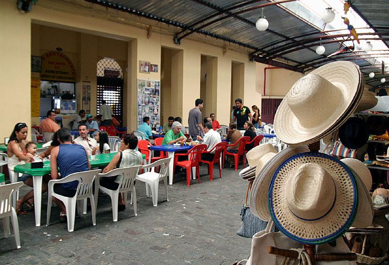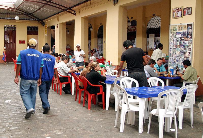 Tranqüilidade, boa culinária, limpeza e organização. Essas são as características do tradicional Mercado Thales Ferraz, que atrai diariamente aracajuanos e turistas. Espaço democrático, aberto a todos, o mercado oferece opções variadas de artesanato, cultura e alimentação, entre tantas outras. Com culinária tradicional, que fortalece as raízes nordestinas, os seus diversos bares e restaurantes oferecem comidas a preços populares e gostos variados. Assim é o restaurante do conhecido Zé Américo de Campo do Brito, sanfoneiro e dono do restaurante Recanto do Agresteiro. Estou aqui há três anos. Tudo começou com uma brincadeira de amigos, queria ter um local agradável para reunir as pessoas que gosto, um ponto de encontro. Gosto do ambiente, da descontração do local, o Thales Ferraz dá condições para isso, por causa da estrutura e da limpeza, comenta. Políticos, cantores, músicos, artistas plásticos, jornalistas e artistas de renome nacional como Gilberto Gil e a apresentadora Ana Maria Braga já passaram por restaurantes do local para provar e aprovar os pratos da terra, entre eles o Arribacão (mistura de feijão de corda com carne do sol). Para o mineiro Leonardo Martins Rocha, que visita Aracaju pela primeira vez, os bares e restaurantes do Mercado são limpos e organizados. Vim conhecer os restaurantes e provar a comida por indicação de um amigo meu que já conhece a cidade. Não vi lixo pelo chão ou entulhado, sempre presto atenção a isso, afinal, se o ambiente é limpo, provavelmente a comida também, enfatiza. Já para Zé Luiz de Oliveira, autônomo que sempre almoça e às vezes toma café da manhã no local, o mercado é um ambiente popular, com comida boa e simples. O que mais gosto aqui é o fato de ser um local que posso trazer a minha família sem preocupação, sempre indico, declara. Gosto de trabalhar aqui, tenho meus fregueses certos e sempre surge um novo. Faço pratos caseiros e simples, porém gostosos. Quem prova sempre volta. As pessoas pedem muito Lombo ao molho, Galinha de Postura e Camarão. Os preços variam, mas vale a pena, o nosso restaurante está sempre limpo e com boa aparência, diz Alira de Oliveira, proprietária do Liras Restaurante, há quatro anos. De acordo com o assessor de comunicação da Empresa Municipal de Serviços Urbanos (Emsurb), Helber Andrade, a limpeza dos Mercados Thales Ferraz e Antônio Franco é feita diariamente, durante todo o dia. Em torno de 20 pessoas são responsáveis pela varrição da calçada e da parte externa do mercado. Já no Mercado Albano Franco, uma equipe de 50 pessoas faz a lavagem dos locais de peixes, mariscos e carnes, todos os dias e, em todo o mercado, uma vez por semana, aos domingos.