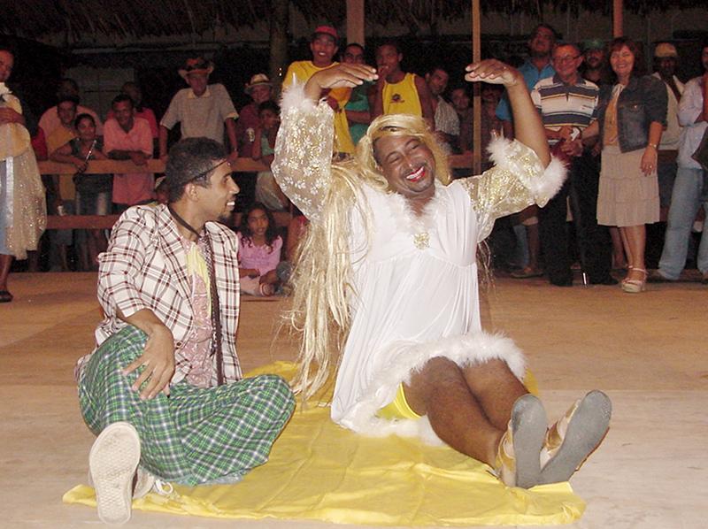 Um teatro chamado Cordel. Este foi o espetáculo apresentado pelo Grupo de Teatro Imbuaça, abrindo a segunda noite de festa do Forró Caju 2006. Com os textos ´O matuto com o balaio de maxixi´, de José Pacheco, e ´Os enganos do amor´ e ´A moça que bateu na mãe e virou cachorra´, de Rodolfo Cavalcante, adaptados respectivamente por Antônio Amaral e Bemvindo Siqueira, o grupo apresenta uma parte da cultura nordestina. Quando a Funcaju inclui apresentações de grupos folclóricos e de teatro na programação do Forró Caju, ela assume o papel da diversidade, que é uma característica de nossa cultura, em especial do ciclo junino, disse Lindolfo Amaral, ator do grupo. Como não temos um festival específico, essas brechas que se abrem são extremamente importantes. Principalmente num evento com a grandiosidade do Forró Caju, essa oportunidade para o Imbuaça e para outros grupos é de suma importância, tanto para mostrar nosso trabalho, como para o público que ainda não nos conhece, comentou Isabel Santos, atriz do Imbuaça. E, realmente, algumas pessoas ainda não conhecem o trabalho de grupos folclóricos e de teatro sergipanos. É o caso do fiscal Wilson Santos, 30, que viu a apresentação do Imbuaça pela primeira vez e ficou encantado. É muito bonito, fiquei impressionado. Não perco mais um espetáculo, disse ele. Jailton Pereira, 32, vendedor, é um dos que curte o Forró Caju desde o início, mas não conhecia o Imbuaça. Adorei a apresentação. Esta iniciativa da Funcaju foi acertada, conheci algo que eu não sabia que Sergipe tinha, comemorou Jailton. A estudante Joseane Vieira, 23, diz que é fã do Imbuaça e não perde um espetáculo. A Funcaju e a Prefeitura de Aracaju estão de parabéns por incluir apresentações como essa na programação do Forró Caju, dando oportunidade ao grande público de conhecer nossos valores e talentos, de saber o que é teatro, já que muitos não têm chance de conhecer todas as formas de arte, disse Joseane. É por isso que a Funcaju faz questão de diversificar a programação e incluir várias formas de expressão da cultura nordestina no Forró Caju. A nossa missão é democratizar a arte e a cultura, reforça Karlene Sampaio, presidente da Fundação Municipal de Cultura, Turismo e Esportes (Funcaju).