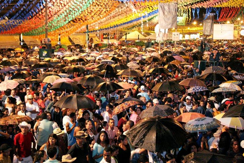 A rápida chuva que caiu não intimidou o imenso público que se aglomerou para ver o show da Banda Calypso, principal atração da madrugada de hoje, dia 21, no palco Luiz Gonzaga. Segunda a estimatimativa da Polícia Militar (PM), cerca de 150 mil pessoas compareceram à festa. Um mar de guarda-chuvas se abriu, mas logo que a chuva passou, casais, solteiros, jovens de todas as idades caíram na dança. O ritmo não era forró, mas igualmente contagiou os presentes, não deixando espaço vazio na praça de eventos Hilton Lopes. O espaço foi completamente tomado pelo maior público reunido desde a abertura da festa, no dia 16. O grupo mostrou porque é o atual fenômeno de vendas e público do Brasil, juntando uma multidão em plena quarta-feira. De acordo com o tenente coronel Lúcio, apesar da grande quantidade de pessoas, a noite foi tranquila. "Para garantir isso 110 policiais atuaram, com o apoio de 112 homens da Guarda Municipal, além de 23 câmeras de monitoramento", informou. Também atuaram na noite 16 agentes de trânsito e 8 fiscais da Superintendência Municipal de Transportes e Trânsito (SMTT). Clique aqui e confira a cobertura on line do Forró Caju 2006