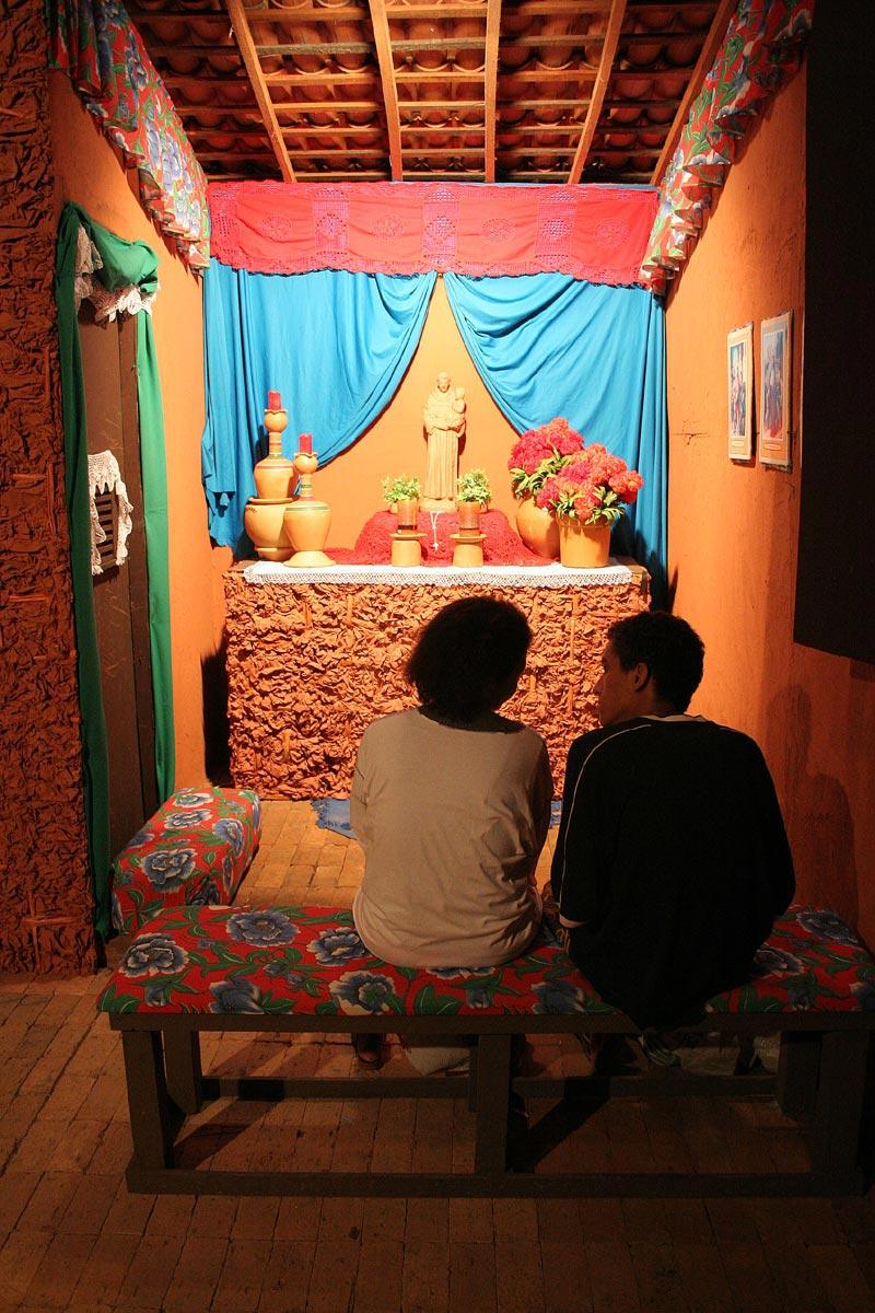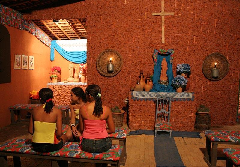 A Capela, criada pela jornalista e artista plástica Lânia Duarte, é uma das maiores atrações do Forró Caju. Localizada no centro da Praça de Eventos Hilton Lopes, a Capela recebe visitas de cerca de mil pessoas por noite. Ao chegar na Capela, os visitantes são recepcionados pelo Palhaço Buchechinha, que interpreta o pároco daquela Capela. Ali, os fiéis primeiro pedem a bênção de Nossa Senhora da Conceição e dos Santos do mês de junho para depois cair na folia. Vim pedir proteção aos Santos. Aqui é o espaço mais bacana do Forró Caju, observa o carpinteiro José Batista. É nota dez, completa. O promotor de vendas Fábio Antonio Santos de Oliveira elogiou o prefeito Edvaldo Nogueira. O prefeito está de parabéns. Esta Capela representa o incentivo que o prefeito Edvaldo Nogueira dá à nossa cultura, observa o promotor de vendas. Ah! Isso aqui é uma maravilha. A decoração é bonita, bem feita e bem organizada, observa a dona de casa Josefa Alves. Na Capela, os fiéis podem fazer seus pedidos dirigidos diretamente para Nossa Senhora da Conceição, padroeira de Aracaju, cuja imagem fica ao centro do altar; a São João e São Pedro, que ficam à esquerda, e a Santo Antônio, à direita da Capela. Aqui minha amiga veio pedir um casamento a Santo Antônio, comenta a estudante Thaís Oliveira, em tom de brincadeira. Aqui é muito legal, um espaço acolhedor. A decoração é linda, resume a vendedora Flávia de Oliveira.
