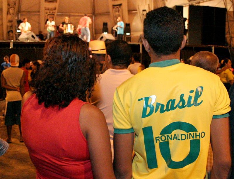 Com muito forró e animação, vibrando ao som da Banda Fogo na Saia, os sergipanos comemoraram a vitória da seleção Brasileira de 4x1 sobre o Japão. Na expectativa dos próximos jogos, turistas e populares mostraram como se dança o tradicional forró pé-de-serra, vestidos de Brasil de corpo e alma, demonstrando o mais verdadeiro sentimento de patriotismo e amor à Pátria. Para o topógrafo Valter Coelho, primeira vez na cidade e no Forró-Caju, Aracaju é linda e com a festa a cidade fica iluminada. “Pretendo voltar outras vezes ao Forró Caju, moro em Salvador e lá os festejos juninos não são tão tradicionais, estou amando a festa é ritmo de vitória e o Brasil é isso, valeu seleção”, comenta o turista satisfeito. Já para Cícero Casagrande, forró e vitória brasileira de goleada na Copa é bom demais. “A seleção está no caminho certo, Parreira deve manter o time de hoje, não se mexe em time que esta ganhando, assim com a Prefeitura deve manter o Forró Caju, que é a autêntica expressão da cultura nordestina”, afirma o assessor político. Em sua sexta edição o Forró Caju torna-se palco das comemorações do povo brasileiro, que ama seu País, resgata e fortalece suas raízes nordestinas dançando muito forró para comemorar as vitórias da seleção na Alemanha. Parabéns Brasil, rumo ao hexa. Clique aqui e confira a cobertura on line do Forró Caju 2006