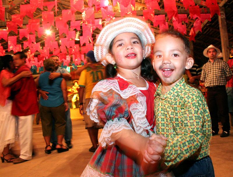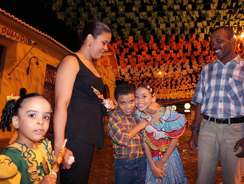 A décima noite de Forró Caju 2006 começou cedo e, dentro deste espaço democrático, há diversas opções de diversão para atender a todos os gostos. O arraial, por exemplo, é o espaço de encontro das famílias, é também o local onde a criançada que vem caracterizada se diverte. A atração da noite desse domingo, dia 25, foi o trio pé-de-serra Coração do Nordeste. Aqui é bom porque a festa começa cedo. Dá para trazer os filhos e voltar mais tarde com o marido, afirma Aparecida da Piedade, que trouxe os três filhos pela primeira vez para festa. Eles são os que mais gostam, ficaram super animados com esta festa, revela Antônio Carlos, pai das crianças. Os irmãos Ana Carolina, 5, e Alexandre, 4, mostram que não é preciso ser gente grande para dar um show de dança na pista do arraial. Eu estou muito orgulhoso dos meus filhos. Eles adoram dançar e por isso eu sempre os trago, revelou Eugênio Bispo, pai dos pequenos.