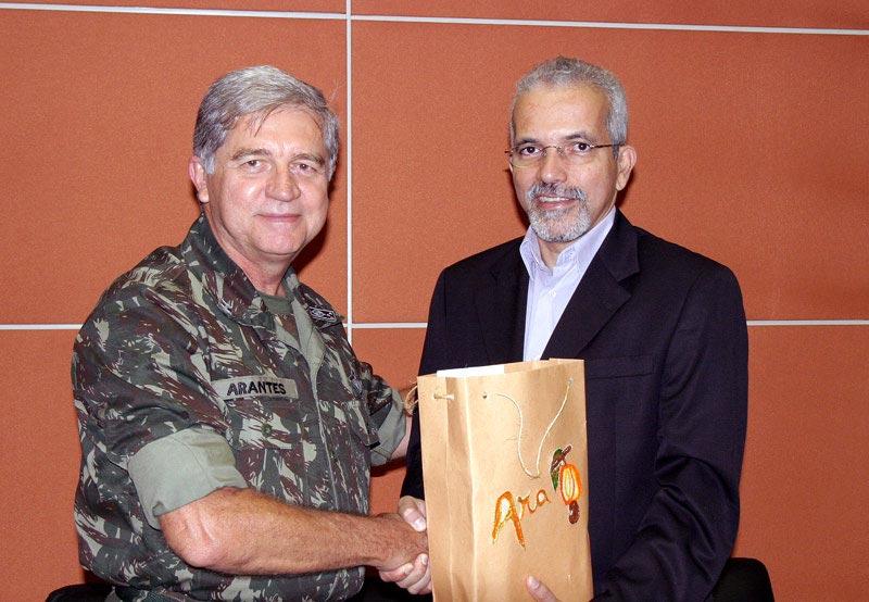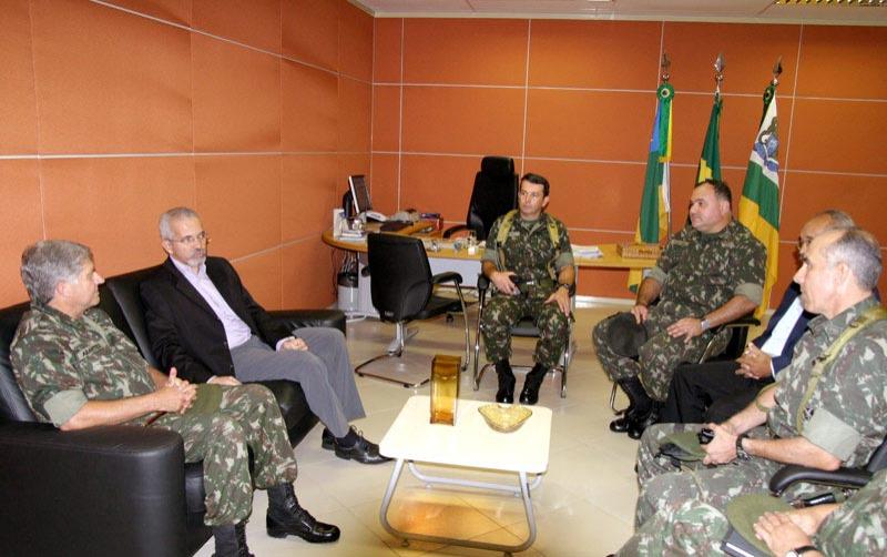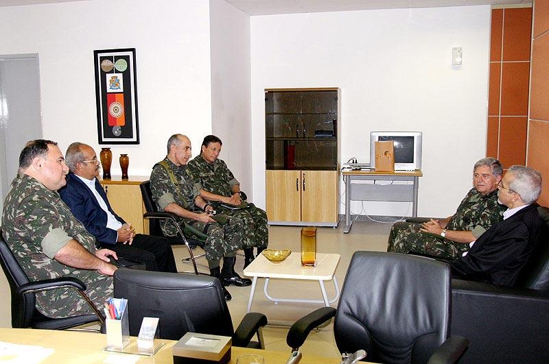 O prefeito de Aracaju, Edvaldo Nogueira, recebeu ao final da manhã de hoje em seu gabinete no Centro Administrativo Prefeito Aloísio de Campos, a visita do general Gilberto Arantes Barbosa, novo comandante da 6a Região Militar - que abrange os Estados de Sergipe e Bahia. Durante o encontro, o prefeito e o general conversaram sobre a capital sergipana e reforçaram os laços de parceria entre a administração municipal e o Exército Brasileiro. O Exército é força fundamental para garantir a integridade territorial brasileira e manter o nosso país unido enquanto nação, inserindo o Brasil no contexto internacional de forma altaneira e positiva. Mas hoje a instituição está cada vez mais próxima da população, agindo no cotidiano das pessoas e se incorporando à vida delas, frisou Edvaldo Nogueira. Ele destacou a importância de o Exército ter assumido o papel de distribuir água em localidades atingidas pela seca como forma de evitar que políticos usem a necessidade do povo como moeda de troca eleitoral, e ressaltou as importantes parcerias que a Prefeitura de Aracaju mantém com as Forças Armadas. O Exército Brasileiro participa com a Prefeitura de campanhas de prevenção à dengue, armazenamento e distribuição de alimentos para famílias em situação de risco durante festas como o Pré-Caju, e atua de forma decidida para preservar a praça Maria Quitéria, localizada em frente o 28o Batalhão de Caçadores (28o BC) e reformada pela administração municipal em 2003, ainda na gestão do ex-prefeito Marcelo Déda. Nós estamos aqui para nos apresentar ao prefeito e agradecer a lealdade e camaradagem que existe entre a Prefeitura e o Exército em Aracaju. Nós estaremos sempre de braços abertos para o que for necessário, assegurou o comandante general Arantes, que pela primeira vez comanda tropas no Nordeste e vem a Aracaju. Vamos continuar sempre de mãos dadas para trabalhar em benefício da população, acrescentou. Ao final do encontro, o prefeito presenteou o general com publicações - livros, anuário estatístico e CD´s - da Prefeitura de Aracaju. Participaram da audiência o major Ricardo Cordeiro; o chefe da 19a Circunscrição do Serviço Militar (19a CSM), coronel João Luiz; o comandante do 28o BC, tenente-coronel William Abrahão; o ajudante de ordens do general Arantes, capitão Raimundo Sampaio; além de Bosco Rolemberg, chefe de Gabinete do prefeito Edvaldo Nogueira.