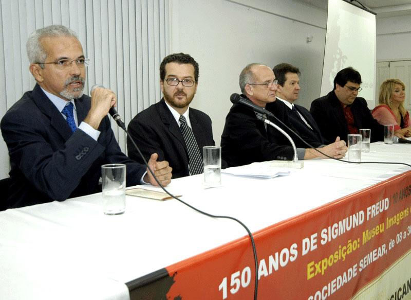 O prefeito Edvaldo Nogueira prestigiou na noite da última sexta-feira, dia 8, a abertura da VII Jornada de Psicanálise de Aracaju, que será realizada todos os sábados do mês de setembro na Sociedade Semear. O evento promovido pelo Núcleo Psicanalítico de Aracaju (NPA) acontece conjuntamente com o VI Encontro de Psicanálise da Criança e do Adolescente e, desta vez, homenageia os dez anos do Núcleo, os 150 anos de Sigmund Freud e o centenário da psiquiatra alagoana Nise da Silveira. A prefeitura da cidade é uma das instituições patrocinadoras da Jornada, que traz à capital duas exposições inéditas no Nordeste: uma do Museu Imagens do Inconsciente (RJ) sobre sua fundadora (Nise) e outra intitulada Psicanálise e Modernismo: as idéias de Freud chegando ao Brasil através de poetas e artistas das décadas de 1920 e 1930. Ambas estarão abertas ao público até o próximo dia 30 também na Semear. Para Aracaju, é uma alegria imensa poder contribuir para a realização de um evento de tamanho significado para a comunidade científica. Este encontro é a prova da ousadia, da coragem de homens e mulheres que não se cansam de lutar num terreno tão árido do conhecimento quanto a psicanálise, afirmou o prefeito Edvaldo Nogueira, que lembrou o artista sergipano de Japaratuba, Artur Bispo do Rosário, como um dos principais nomes da arte do inconsciente. O presidente da NPA, Adalberto Goulart, contou num breve resumo a biografia de Freud, a história do Núcleo de Aracaju, e aproveitou para agradecer à administração municipal pela parceria na realização do evento. Sem a responsabilidade e a sensibilidade do prefeito Edvaldo Nogueira, nós não poderíamos realizar este evento, declarou. Sua afirmação foi enfatizada pela diretora científica do NPA, Maristela Santana. O prefeito não só apoiou nossa idéia, como nos estimulou a realizá-la, disse. Segundo Alírio Dantas, presidente da Sociedade Psicanalítica de Recife (SPR), a Jornada é resultado do esforço incansável dos integrantes do NPA. Este encontro traduz o trabalho empreendedor e a seriedade com que a ciência psicanalítica é encarada em Aracaju e em Sergipe, avaliou. O presidente da Associação Brasileira de Psicanálise (ABP), Pedro Gomes, complementou. Nós nos sentimos muito honrados em participar ativamente do desenvolvimento da psicanálise aqui, disse. Os diretores do Museu Imagens do Inconsciente, Luiz Melo, e da Sociedade Semear, Carlos Britto; a representante do governo estadual, psiquiatra Maria Dávila, além de psicólogos, psiquiatras e estudantes sergipanos participaram da abertura da Jornada de Psicanálise. Saiba mais sobre Nise da Silveira e Sigmund Freud no site www.museuimagensdoinconsciente.org.br