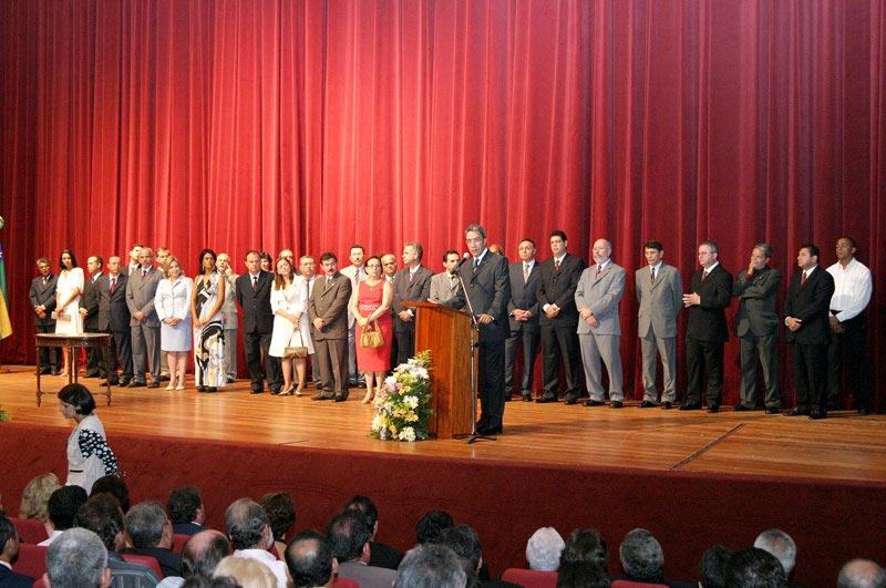 O prefeito de Aracaju, Edvaldo Nogueira, participou na manhã de hoje, terça-feira, no Teatro Tobias Barreto (TTB), da solenidade de posse de 21 novos secretários estaduais nomeados pelo governador de Sergipe, Marcelo Déda. Para o prefeito, a partir de agora a capital sergipana começa a viver um momento ímpar de sua história porque a sinergia já vivida entre os governos municipal e federal amplia sua abrangência também ao nível estadual. Pela primeira vez em 44 anos chega ao poder um governador de esquerda liderando um bloco político de centro-esquerda, derrotando as elites sergipanas e abrindo a construção de um novo cenário político, econômico e social para Sergipe. A confluência entre os três níveis do governo vai acabar com as disputas desnecessárias e valorizar cada vez mais a construção de parcerias; o trabalho conjunto para construir mais em benefício do povo de Aracaju, avalia Nogueira. Renovação A Prefeitura de Aracaju tem sido um celeiro de novos quadros. Além de ser administrada de forma ética e democrática, tem conseguido revelar novos nomes para a vida pública, aliando experiência e novidade e, sobretudo, abrindo caminhos para uma nova mentalidade na hora de governar. De acordo com o prefeito, é motivo de alegria poder ceder seis secretários municipais para compor a equipe do Governo do Estado. Qualquer administrador municipal ficaria muito orgulhoso em ver que uma parte do seu secretariado foi convocada para as grandiosas tarefas de secretários do Estado de Sergipe. Eu fico muito feliz com a possibilidade de mais uma vez inovar, renovar a administração de Aracaju, e tenho certeza de que vou montar uma equipe nova de trabalho tão competente quanto a que havia, assegura o prefeito. Assumiram hoje suas novas funções no Estado os ex-secretários de Aracaju Oliveira Júnior, Lúcia Falcón e Bosco Mendonça. Os atuais secretários do município Francisco Dantas (Administração), João Andrade (Emsurb), Edson Caetano (Fundat) serão empossados posteriormente como diretor do Detran, presidente do Banese e diretor do Banese. A ex-diretora de marketing da Secom municipal, Eloisa Galdino, já ocupa o cargo de secretária de Estado da Comunicação e o major Lima Alves, antes diretor de Trânsito da SMTT, será o chefe da segurança pessoal do governador. Trabalho Segundo o governador Marcelo Déda, a palavra de ordem é trabalhar. Depois do cargo vem o encargo e não podemos perder um segundo sequer para aplicar em cada pasta o nosso programa de governo eleito pelo povo sergipano. O secretariado nomeado hoje traduz os valores e compromissos do governo que chega com a melhoria na qualidade dos gastos públicos, inclusão social e respeito ao cidadão, resume. O novo secretário de Estado da Justiça e Cidadania, Benedito Figueiredo, falou em nome de todos os colegas empossados. A minha geração sente-se realizada agora através da geração do governador Marcelo Deda, porque eu sei que Sergipe jamais será o mesmo depois desta administração. É uma necessidade urgente desta equipe trabalhar para servir ao povo sergipano, enfatiza. Os secretários estaduais Bosco Costa (Articulação com Municípios) e Jorge Araújo (Coordenação Política e Assuntos Institucionais) não foram empossados porque precisam finalizar seus mandatos como deputados federal e estadual, respectivamente. Pelo mesmo motivo não assumiram seus cargos o deputado federal Jorge Alberto (Administração) e a deputada estadual Ana Lúcia (Inclusão e Desenvolvimento Social). Comandam estas duas pastas interinamente Sônia Meire de Jesus e José Leite Prado Filho. Participaram da solenidade de posse o vice-governador Belivaldo Chagas; a presidente do Tribunal de Justiça de Sergipe, desembargadora Marilza Maynard; o senador Antônio Carlos Valadares; a procuradora geral de Justiça do Estado, Maria Cristina Mendonça; o presidente da Câmara de Vereadores, Sérgio Góes; parlamentares federais, estaduais e municipais; a primeira-dama do Estado, Eliane Aquino; além de prefeitos do interior, secretários municipais de Aracaju e diversas autoridades. Veja a lista de empossados esta manhã: Casa Civil: José de Oliveira Júnior Fazenda: Nilson Lima Governo e Gestão Estratégica: Clóvis Barbosa Comunicação: Eloisa Galdino Agricultura, Desenvolvimento Rural e Agrário: Paulo Viana Turismo: João Augusto Gama Planejamento: Lúcia Falcón Justiça e Cidadania: Benedito Figueiredo Saúde: Rogério Carvalho Cultura: Luiz Alberto Educação: José Fernandes de Lima Segurança Pública: Kércio Silva Pinto Infraestrutura: Oswaldo Nascimento Meio Ambiente: Márcio Macêdo Desenvolvimento Econômico, Ciência e Tecnologia: Jorge Santana Inclusão e Desenvolvimento Social: Sônia Meire de Jesus (interina) Procuradoria Geral: Edson Ulisses Transportes e Assuntos Metropolitanos: Bosco Mendonça Esporte e Lazer: José Leó de Carvalho Filho Administração: José Leite Prado Filho (interino) Trabalho, Juventude e Promoção da Igualdade: José Renato Brandão