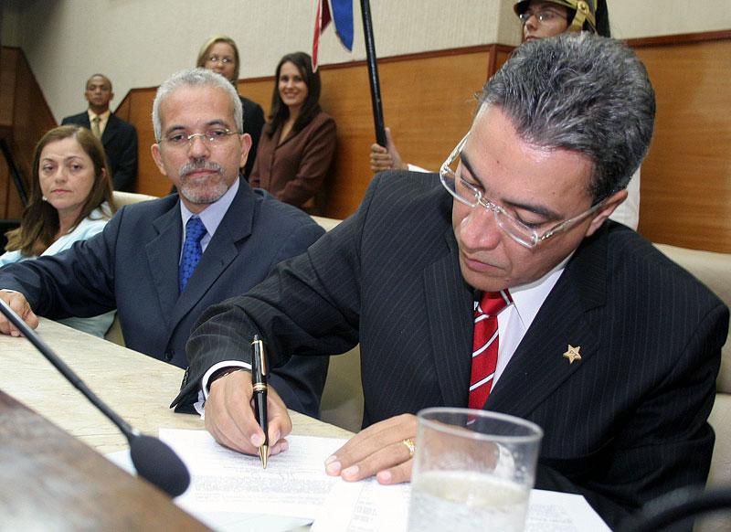 O prefeito de Aracaju, Edvaldo Nogueira, participou durante a tarde e início da noite de ontem, dia 1º, da missa e solenidades de posse e transmissão do cargo ao novo governador de Sergipe, Marcelo Déda, e do vice-governador, Belivaldo Chagas. Em todos os atos o prefeito esteve ao lado do governador empossado, de quem é amigo, companheiro de mandato e correligionário político. O primeiro compromisso aconteceu às 14 horas na Catedral Metropolitana de Aracaju, onde o arcebispo Dom Palmeira Lessa celebrou a Missa de Posse. Marcelo Déda chegou emocionado ao lado da primeira dama do Estado, Eliane Aquino, e dos pais Emanuel Celestino Chagas e Zilda Chagas. Durante a missa o governador teve a companhia na primeira fileira de Edvaldo Nogueira e da primeira-dama do município, Indira Amaral. Na Catedral o governador disse as primeiras palavras como governador. Hoje eu tomo posse do cargo de governador, eleito que fui pela graça de Deus e pelo voto do povo de Sergipe. É um dia de festa, alegria e também de grande responsabilidade e profunda reflexão. Viemos aqui na casa de Deus para dizer obrigado e pedir luz e a graça da sabedoria na condução desse Estado. Que Deus me dê força, coragem e sabedoria e que eu nunca esqueça de onde vim, porque os que sabem de onde vieram nunca se perdem quando buscam onde querem chegar, declarou. Solenidade de Posse Após a Missa, Marcelo Déda, Edvaldo Nogueira e dezenas de autoridades políticas presentes dirigiram-se para a Assembléia Legislativa de Sergipe, onde ocorreu a solenidade de posse do novo governador. Para o prefeito Edvaldo Nogueira, que mais uma vez esteve ao lado do governador, o ato representou um marco para todos os sergipanos. A posse do ex-prefeito de Aracaju e agora governador de Sergipe, Marcelo Déda, é um momento muito importante na história de Sergipe, pois revela a alternância do poder e a mudança efetiva da política de Sergipe. É uma vitória de Marcelo Déda e de um conjunto de partidos aliados que lutaram durante muito tempo e esse é um momento ímpar, por ser a primeira posse de um governador de centro-esquerda. É momento para comemorar, para celebrar e para pensar naquilo que vamos realizar, disse o prefeito. Transmissão do cargo No último ato oficial da posse, antes da comemoração na praça Fausto Cardoso, João Alves Filho assinou o termo de transmissão do cargo de governador, passando o governo para Marcelo Déda, que com um elegante discurso o recebeu. A qualidade do adversário enobrece a vitória. Foi dura a campanha, porque eu posso dizer que enfrentei um guerreiro e hoje tenho a exata dimensão do momento histórico que vivo. Assumo com muita vontade de trabalhar e sabendo da tarefa gigantesca que recebi, mas as eleições passam e Sergipe fica e não abriga meu peito nenhum sentimento de vingança, disse Déda, cumprimentando o ex-governador. O prefeito de Aracaju disse ainda viver três momentos diferentes. Hoje eu estou aqui como cidadão que tem uma expectativa de um grande governo. Além disso, como prefeito e homem público que tem a noção de um começo de muitas dificuldades. Também estou aqui como correligionário de Marcelo Déda, que é um líder político de um partido aliado. Então eu fico muito feliz e tenho uma imensa alegria por ser amigo de Déda, que tem inteligência, talento e capacidade para fazer um grande mandato, disse o prefeito após a transmissão do cargo, realizada no teatro Tobias Barreto. Encerrando a noite, Marcelo Déda fez seu primeiro discurso em praça pública como governador do Estado. O pronunciamento, que aconteceu no Palácio do Governo, localizado na praça Fausto Cardoso, contou com a participação de grupos folclóricos, imprensa e pessoas vindas de todos os cantos do Estado. E, para comemorar, apresentação de atrações musicais locais.