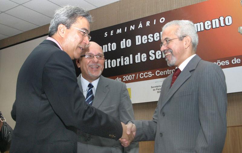 O prefeito de Aracaju, Edvaldo Nogueira, participou na manhã de hoje da abertura do Seminário de Planejamento do Desenvolvimento Territorial de Sergipe. O evento, que vai até a próxima sexta-feira, dia 9, no Centro de Convenções de Sergipe, reúne diversos técnicos da área de planejamento do Estado. Durante a solenidade, foi realizada a assinatura de protocolo de intenções de Cooperação Técnica, visando a elaboração e implementação do Plano de Desenvolvimento participativo e regionalizado de Sergipe. Segundo o prefeito Edvaldo Nogueira, com este Seminário o governador Marcelo Déda tomou a ótima iniciativa de retomar o planejamento governamental que tinha sido destruído em governos anteriores. “O planejamento ficou à deriva no passado. Agora, será possível traçar um desenvolvimento econômico para Sergipe. Construir um planejamento é muito importante, sempre acompanhando o desenvolvimento do Estado. O Seminário vai servir para definir as prioridades para dar um plus à administração do Estado”, disse Edvaldo. Na ocasião, o governador Marcelo Déda, acompanhado da primeira-dama, Eliane Aquino, proferiu discurso acerca da importância da implementação do Orçamento Participativo em Aracaju. “Tivemos uma experiência exitosa da participação popular na Prefeitura e vimos que essa interação pode acontecer de verdade na prática. A idéia desse seminário é qualificar um novo tipo de planejamento participativo, pois a capacidade de pontuar as obras não é somente dos técnicos, mas também da própria sociedade”, afirmou Déda. Estiveram presentes na solenidade, além de representantes e superintendentes de bancos, o vice-governador Belivaldo Chagas; a deputada estadual Conceição Vieira, representando a Assembléia Legislativa; o deputado federal, Jackson Barreto; a secretária estadual de Planejamento, Lúcia Falcón; o secretário estadual da Fazenda, Nilson Lima; o presidente da Codevasf, Luís Carlos de Farias; o reitor da UFS, Josué Modesto Subrinho; o secretário de Desenvolvimento de Políticas Regionais do Ministério da Integração Nacional, Maurício Rodrigues; o secretário de Desenvolvimento Territorial do Ministério do Desenvolvimento Agrário, José Humberto Oliveira.