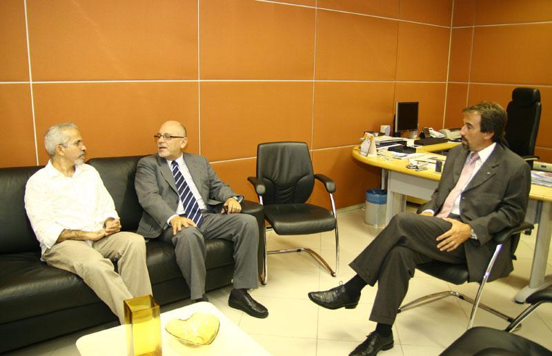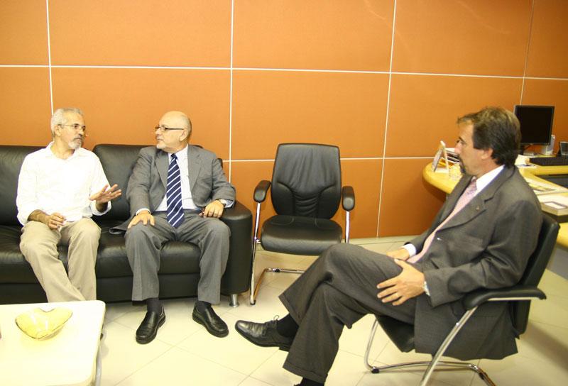 O prefeito de Aracaju, Edvaldo Nogueira, recebeu ao final da tarde de ontem a visita do vice-presidente da Caixa Econômica, Jorge Fontes Hereda, que esteve acompanhado do superintendente da Caixa em Sergipe, Gilberto Occhi. Jorge Hereda, que também é diretor de Desenvolvimento Urbano e Governo da Caixa, falou brevemente sobre o encontro. Eu vim visitar o prefeito Edvaldo Nogueira por parceiros que somos já há muito tempo, a Caixa e a Prefeitura da cidade. Temos muitos projetos juntos e discutimos futuros projetos para Aracaju, disse. Edvaldo Nogueira reforçou as informações do vice-presidente. É uma visita importante, porque Hereda é o responsável pela relação da Caixa Econômica com os municípios, os Estados e os projetos urbanísticos. Nós tratamos dos investimentos da Caixa Econômica nos municípios brasileiros e inclusive estamos trabalhando uma série de projetos para desenvolver com o Governo Federal por meio desta parceria, contou.