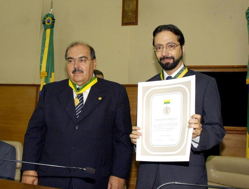 O prefeito de Aracaju, Edvaldo Nogueira, participou no final da manhã de hoje, da sessão especial da Assembléia Legislativa de Sergipe que concedeu a Medalha de Ordem do Mérito Parlamentar para o médico oftalmologista aracajuano Mário Ursulino Machado Carvalho, pelos seus relevantes serviços prestados à sociedade sergipana. O prefeito, que é amigo do médico, disse ser um justo reconhecimento ao homem e ao médico, como profissional reconhecido pelo trabalho no Hospital de Olhos de Sergipe (HOS) e pelo pioneirismo no Estado no tratamento da catarata e na utilização dos mais modernos equipamentos no tratamento da visão. “Mário Ursulino é um profissional extraordinário, um dos melhores oftalmologistas do Brasil e talvez do mundo. Um homem de cultura elevada e princípios sólidos. Também como médico e pai de família merece essa condecoração. Nunca a Assembléia Legislativa fez uma homenagem tão merecida como essa”, comenta o prefeito. O oftalmologista Mário Ursulino afirmou que não poderia receber presente melhor do que essa homenagem. “O sonho de ser médico me acompanha desde pequeno e no vestibular já tinha a especialização definida. Depois de cinco anos fazendo especialização fora, pude retornar trazendo novas técnicas e novos aparelhos para proporcionar aos aracajuanos uma visão melhor. Divido essa medalha com todos os mais de 50 colaboradores do HOS. Espero ter força e saúde para poder dar continuidade ao nosso sonho ou talvez o nosso destino de cuidar da saúde dos olhos de todos os clientes que escolheram e confiaram no nosso trabalho”, diz Ursulino, dedicando a medalha aos familiares. A sessão solene foi presidida pelo deputado Antônio Passos e fizeram parte da mesa, além do prefeito Edvaldo Nogueira, o diretor do Hospital João Alves Filho, Gilvan Monteiro; o desembargador José Artêmio Barreto, representando o Tribunal de Justiça; o presidente da Câmara de Vereadores, Zeca da Silva, e a promotora Ana Cristina Brant, representando o Ministério Público.