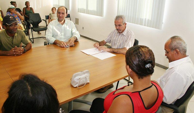 O prefeito de Aracaju, Edvaldo Nogueira, recebeu na tarde de ontem, segunda-feira, representantes das famílias da Invasão das Salinas, localizada no bairro Lamarão. Participaram da reunião o secretário chefe de governo, Bosco Rolemberg, e o secretário municipal de Comunicação, Carlos Cauê, que juntamente com o prefeito, conversaram com um dos representantes da comissão, Gilson dos Santos Nascimento. Cerca de 25 pessoas lotaram a sala de reuniões do Centro Administrativo Prefeito Aloísio Campos para conversar com o prefeito sobre as condições do terreno da invasão que já existe há oito anos. Por enquanto a Prefeitura de Aracaju não pode tomar nenhuma providência para a melhoria do local, porque o terreno é da Superintendência do Patrimônio da União (SPU). Segundo o prefeito Edvaldo Nogueira, a PMA só poderá buscar recursos para realizar a obra quando a SPU transferir para a Prefeitura a posse do terreno. Estamos adiantando o processo de fazer do lugar da ocupação um local urbanizado e a construção de moradias. Estamos dependendo de uma ação da SPU para que possamos fazer projetos e aí buscar recursos e poder realizar essa obra. Da parte da Prefeitura, o projeto já está bem adiantado, a Emurb já começou a fazer o projeto de como vai ficar a área, informa o prefeito. Existe uma decisão minha, política, pessoal, de criar essas moradias, porque é uma população que merece e precisa. Nós temos muito interesse de realizar, mas precisamos dos recursos e estamos buscando com o Governo Federal para construir as 300 casas. Só poderemos ter alguma previsão quando o documento for passado, porque o terreno é da SPU, são os chamados ´terrenos de marinha´, não é do município, afirma Edvaldo Nogueira. Ele complementou dizendo que só assim poderá avaliar quanto vai custar e de onde virão os recursos. Aí poderemos planejar melhor. Enquanto isso, não podemos mexer no terreno, não podemos tomar medidas concretas, podemos apenas planejar, ressalta Nogueira, acrescentando que os moradores concordaram e que a PMA já está agilizando o processo, pois determinou à Secretaria Municipal de Planejamento (Seplan) que autorizasse o processo junto à SPU.