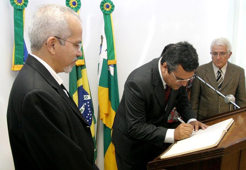 O prefeito de Aracaju, Edvaldo Nogueira, empossou na manhã de hoje o economista, administrador publico e funcionário de carreira da Caixa Econômica Federal (CEF), Luciano Pimentel, no cargo de secretário municipal do Planejamento. O novo comandante da pasta tem a missão de aprofundar a aplicação dos conceitos de ética, integração entre as secretarias e participação popular com inversão de prioridades na administração municipal. No início de 2001 fizemos um seminário de planejamento no Sebrae, que nos permitiu atingir mais de 80% de nossas metas e deixar um legado de mais 10 anos de planejamento para a cidade. No poder público, é fundamental a idéia de continuidade porque os projetos não podem ser pessoais, mas da sociedade. Como Luciano Pimentel está afinado com esse pensamento, tenho certeza de que irá fazer um grande trabalho, avaliou o prefeito. Para ele, é estimulante trazer para sua equipe um profissional com sede de vencer os desafios que se apresentam. Desde o primeiro momento em que fiz o convite, Luciano mostrou o quanto ficou entusiasmado com a nova tarefa. Ele tem um currículo extraordinário, é um técnico reconhecidamente competente e a presença de tantos prefeitos do interior aqui hoje mostra o quanto ele é querido em nosso Estado pelos serviços que presta à sociedade, acrescentou Edvaldo ao destacar o papel da CEF na formação de novos e competentes quadros profissionais para a administração pública. Mais de 10 prefeitos sergipanos participaram da posse Luciano Pimentel. O novo secretário é formado pela Faculdade Católica de Ciência Econômicas da Bahia, Universidade Federal da Bahia (UFBA) e Universidade Tiradentes (Unit). É pós-graduado em Gestão Empresarial pela Universidade Federal de Sergipe (UFS) e, antes de trabalhar na Caixa Econômica Federal, foi funcionário do Banco Econômico e Banco do Estado da Bahia. Acredito neste projeto político e fico muito feliz em poder contribuir ainda mais com o desenvolvimento da cidade que me acolheu tão bem há 26 anos. Eu chego para dar continuidade ao processo de modernização das ações do Planejamento, para fazer uma gestão orientada para o cidadão e centrada nas demandas sociais, dar efetividade aos convênios e contratos existentes, pensar em novas propostas e trabalhar na confluência entre planejamento e orçamento, resumiu o novo secretário. A ex-ocupante da pasta, Lúcia Falcón, que assumiu no início do mês o comando da Secretaria de Estado do Planejamento, foi secretária municipal da área durante oito anos nas gestões dos ex-prefeitos João Augusto Gama e Marcelo Déda, atuais secretário de Estado do Turismo e governador do Estado, e também do prefeito Edvaldo Nogueira. Graças ao esforço muito grande de toda a equipe da Seplan, hoje já temos uma cultura do Planejamento na capital e eu sei que Luciano encontrará um campo fértil para produzir, falou Lúcia. Participaram da solenidade de posse o vice-governador Belivaldo Chagas; os deputados federal Valadares Filho e estadual Ulices Andrade; o presidente da Câmara de Vereadores, Sérgio Góes; os superintendentes da CEF, Gilberto Occhi, e do Banco do Brasil, Éverton Teixeira; os prefeitos de Itaporanga, Areia Branca, Cedro, Simão Dias, Boquim, Itabaiana, Socorro, Brejo Grande, Propriá, Capela, Poço Verde e São Cristóvão; secretários municipais, além de diversas autoridades e servidores da prefeitura.