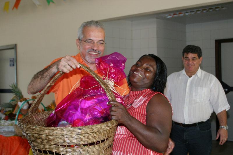 O prefeito de Aracaju, Edvaldo Nogueira, participou na tarde de hoje, segunda-feira, da Festa Junina dos Garis, promovida pela Prefeitura Municipal de Aracaju (PMA), por meio da Empresa Municipal de Serviços Urbanos (Emsurb). A festa foi animada por Jailson do Acordeom. Na zabumba, Edvaldo fomentou a descontração, contagiando todos que caíram no forró. Não faltou nenhum ingrediente para a festa ser completa, da canjica ao milho verde, da zabumba ao triângulo arrepiando no salão, também ritmado pelo prefeito, que aproveitou o momento para presentear os trabalhadores da limpeza pública com o tradicional balaio de São João. Segundo Edvaldo Nogueira a festa dos garis é uma forma de agradecimento a estes profissionais que fazem de tudo para manter a cidade limpa. Quero agradecer a todos que contribuem para Aracaju continuar tão bela e limpa. Recentemente fizemos uma pesquisa de opinião pública com o intuito de sabermos o que a população acha do trabalho desenvolvido pela PMA. Mais uma vez o cidadão apontou a limpeza pública como um dos serviços líderes na preferência da sociedade, junto ao Samu 192 - Aracaju e o recapeamento asfáltico, comenta o prefeito. Logo quando chegou à sede da Associação dos Engenheiros Agrônomos do Estado de Sergipe (Aease), o prefeito abraçou e cumprimentou a todos os garis. Em seguida, apreciou a comida junina, junto ao secretário municipal de Governo, Sílvio Santos; ao presidente da Emsurb, Moacir Santana; além de funcionários da Empresa. De acordo com o presidente da Emsurb, Moacir Santana, esta é uma ação que pretende valorizar o trabalho destas pessoas que trabalham dia-a-dia para deixar a cidade limpa. É uma alegria poder trabalhar com essas pessoas. Portanto, queremos também participar destes momentos de descontração, elevando a auto-estima, disse Moacir. Para a senhora Maria de Lourdes, que trabalha há 20 anos na limpeza da capital, o prefeito está de parabéns por valorizar seus funcionários. Ela ainda aproveitou para dizer que Edvaldo Nogueira está em plena forma do forró. Gostei muito de ver e ouvir o prefeito tocando. Ele leva jeito para coisa, destaca.