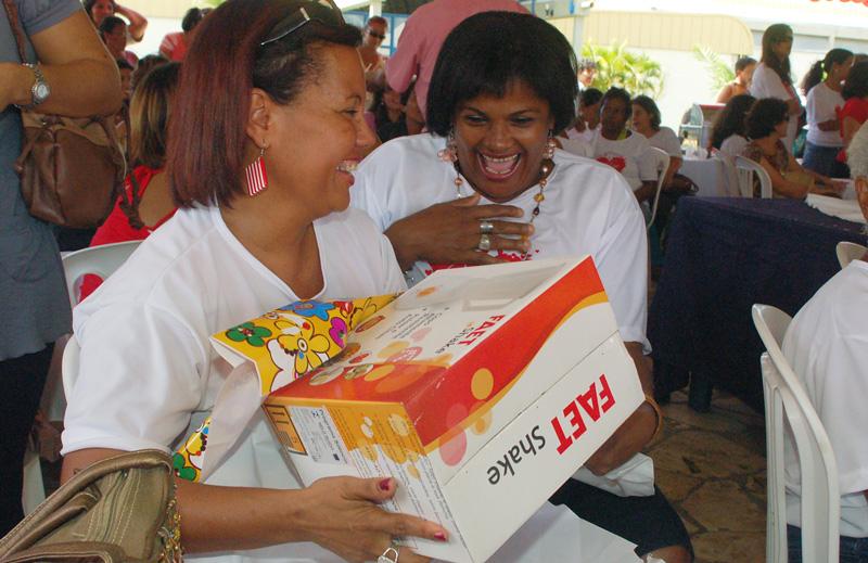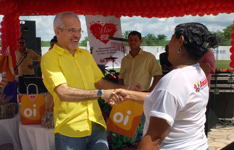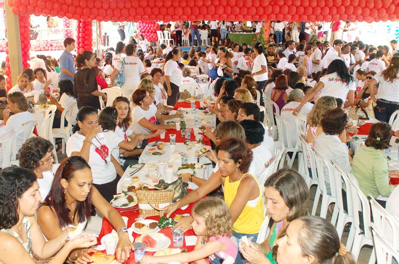 Um ambiente com muita alegria e descontração. Esse foi o clima da festa, aberta pelo prefeito Edvaldo Nogueira, em homenagem às servidoras que compõem as secretarias da Prefeitura Municipal de Aracaju. O evento, que teve o tema ´Mãe: amor em todo canto da cidade´, aconteceu no Sest/Senat. Na ocasião, o prefeito fez questão de passar em cada uma das mesas para cumprimentar as 1.300 servidoras participantes. Logo no início da manhã foi realizado um aulão de ginástica, ministrado pela professora Risonete Lúcia, da Escola Municipal de Ensino Fundamental (Emef) Santa Rita de Cássia, com o intuito de transmitir energia e conscientizar para a importância da prática de atividade física. Em seguida, foi servido um café da manhã na companhia do prefeito, que fez um discurso homenageando às mães servidoras. Eu quero agora, próximo ao Dia das Mães, homenageá-las e fazer uma confidência: a pessoa mais importante da minha vida é minha mãe, que em agosto faz 80 anos. As mães são fundamentais para o mundo. No mundo hoje, estamos precisando de amor, solidariedade, de paz e isso as mulheres têm de sobra. Por isso, quero hoje aqui dizer apenas duas palavras: Muito Obrigado! Obrigado a vocês. Hoje quem merece aplausos são vocês, mães e servidoras da Prefeitura, parabenizou Edvaldo. Em seguida, o prefeito sorteou brindes entre as servidores e, dentre eles, quatro aparelhos de telefone celular, doados por empresas parceiras do município. Estou muito contente e estou adorando a festa. Recebi o brinde das mãos do prefeito; não esperava isso. É maravilhoso, comentou emocionada a agente de saúde da Unidade de Saúde da Família (USF) Geraldo Magela, Lígia Maria Ribeiro Santana, a primeira a ser contemplada no sorteio. A também agente de saúde Mary Jane Bonfim, 26, mãe de dois filhos e a espera do terceiro (quinto mês de gestação), disse que a família é muito importante na dupla jornada. Muito legal a festa e acho mais do que merecida, pois as servidoras realmente merecem. Falo por mim, que estou na minha terceira gravidez, e sei o quanto é difícil cuidar de filhos e ainda trabalhar. Mas graças à Deus tenho a ajuda do meu marido, da minha família, assim fica mais fácil, destacou. A vereadora Rosângela Santana, que também é servidora do município, parabenizou a iniciativa do prefeito e disse também que é uma homenagem mais do que merecida, por tantos anos dedicados ao serviço público municipal. Eu sou funcionária da Prefeitura e estou aqui nessa condição. Nós, funcionárias da PMA, partilhamos essa vida de mãe com o serviço público; afinal de contas, passamos 30 anos trabalhando nas escolas, nos postos de saúde, na assistência social. Então, nada melhor do que essa homenagem. O prefeito está de parabéns e fiquei muito feliz com essa iniciativa, relatou. A chefe do Cerimonial da Prefeitura e integrante da comissão organizadora do evento, Fernanda Silva, falou sobre a idéia de se realizar uma festa para as mães. Partiu da Secretaria de Administração, que pensou inicialmente em fazer uma festa somente com as servidores do Centro Administrativo. Quando a idéia foi passada ao prefeito, ele desejou que se estendesse para todas as Secretarias que compõe a PMA, informou Fernanda, ressaltando que ser servidora é ser prestadora de serviço da sociedade. Sentimos que o trabalho desenvolvido é recompensado, ainda mais com esta homenagem de hoje. É muito bom que o prefeito, a Prefeitura, pense dessa forma. É bom homenagear não só as mães, mas também os pais no mês de agosto, disse. A animação da festa ficou por conta da banda Gil Castro e Iracema e do o trio pé de serra Bom Demais. Também participaram do evento a deputada estadual Tânia Soares; a presidente do Conselho Municipal dos Direitos das Mulheres, Ivânia Pereira; o superintendente da SMTT, Antônio Samarone; o diretor geral da Guarda Municipal, Coronel Carlos Magno; a presidente da Funcaju, Lucimara Passos; os presidentes Carlos Magno (Fundat), Valmor Bezerra (Emurb) e Moacir Santana (Emsurb); além dos secretários Bosco Rolemberg (Chefia de Gabinete do prefeito); Rômulo Rodrigues (Participação Popular); Tereza Cristina (Educação); Jeferson Dantas (Finanças); Lucivanda Passos (Administração); Lêda Lúcia (Saúde).
