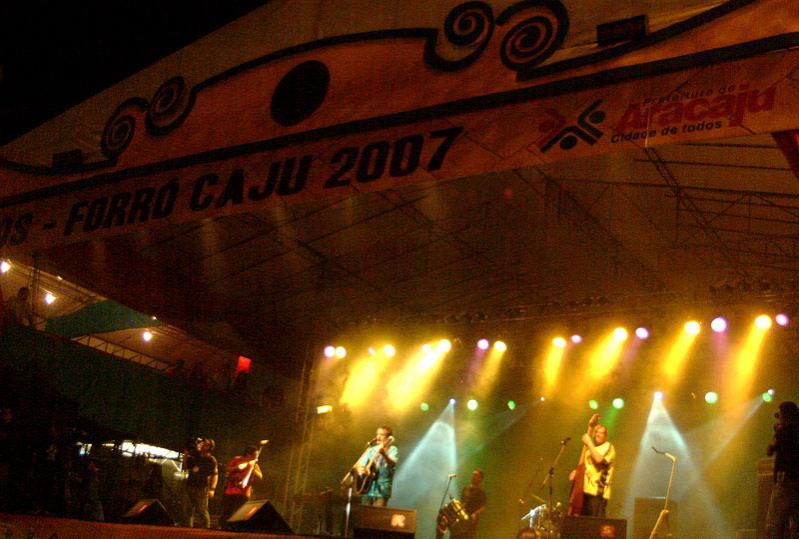 O grupo pernambucano Quinteto Violado acaba de subir ao palco principal do Forró Caju e já mostra toda a sua originalidade e regionalismo. A banda existe há 35 anos e todo o seu trabalho é fundamentado em pesquisas e estudos musicais. O público que se concentra em frente ao palco já dança e dá sua resposta aos artistas. O estilo que mistura o popular - observado nas melodias e na influência do folclore - e o erudito - presente no tom orquestral da banda de múltiplos instrumentos - está agradando e animando os forrozeiros desde os primeiros acordes.