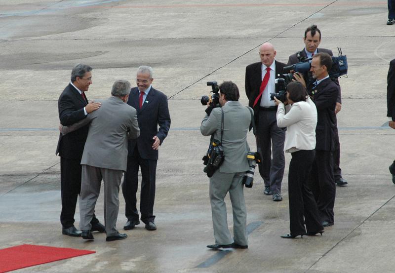 O prefeito de Aracaju, Edvaldo Nogueira, acaba de recepcionar o presidente Luiz Inácio Lula da Silva no Aeroporto Santa Maria. O Avião da Força Aérea Brasileira, que trouxe parte da comitiva presidencial, aterrisou às 9h47; já a aeronave da Presidência da República, que trouxe o presidente, chegou às 9h55. Na recepção ao presidente Lula, feita ainda na pista do aeroporto, Edvaldo esteve ao lado do governador do Estado, Marcelo Déda, que veio junto com o avião presidencial. É um dia histórico para a cidade de Aracaju. Eu já estou militando na política há 25 anos e nunca vi um presidente da República vir até Aracaju trazer tantas possibilidades de recursos para a cidade e também para o Estado. É a comprovação prática daquilo que nós falamos em diversos momentos das últimas campanhas políticas. A vitória do presidente Lula era muito importante para Aracaju, para o Estado de Sergipe e também para o prefeito Edvaldo Nogueira e o governador Marcelo Déda, pois não há disputas, trabalhamos juntos, comentou o prefeito Edvaldo Nogueira, momentos antes da chegada do presidente. Veja mais... Agenda do presidente Lula em Aracaju