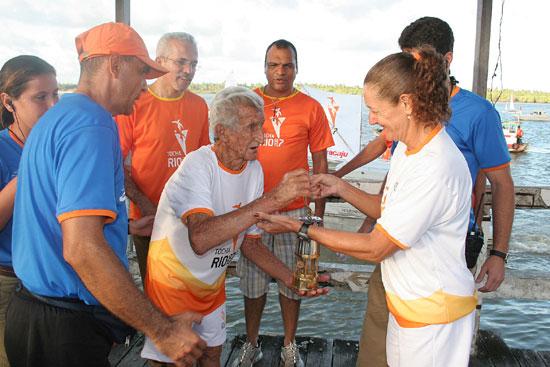 Alguns dos pontos de maior concentração popular na passagem da tocha dos Jogos Pan-Americanos por Aracaju estavam na parte do trajeto que vai da Praça da Bandeira, no Centro da capital, até o Parque Augusto Franco, mais conhecido como Sementeira. Seja nas calçadas, carros ou até mesmo nas varandas das residências, uma multidão saudou com entusiasmo as personalidades sergipanas encarregadas de conduzir a tocha. Ocasião marcante foi proporcionada pela participação de Zé Peixe no evento. O médico sanitarista Almir Santana, um dos responsáveis por levar o símbolo dos Jogos no trecho da avenida Barão de Maruim, não parou de sorrir. “Foi fantástico! A tocha representa a união dos povos e é o que estamos vendo com essa receptividade do público”, disse Almir ao passar a tocha para o pastor Luiz Antônio, condutor que lhe sucedeu. Após percorrer toda a Barão, que ficou marcada pela quantidade significativa de pessoas nas janelas dos condomínios, a tocha dos Jogos adentrou a avenida Ivo do Prado e seguiu em direção à Capitania dos Portos. Lá aconteceu um dos momentos mais emocionantes do trajeto. O lendário Zé Peixe, acompanhado do prefeito Edvaldo Nogueira, conduziu a Tocha em uma lancha até o Iate Clube. À margem do rio Sergipe, os sergipanos batiam palmas e gritavam o nome de Zé, conhecido pelos feitos heróicos em águas sergipanas. Ao final de sua participação, Zé Peixe, que confessou não esperar uma homenagem dessa magnitude após os 80 anos de vida, se disse muito feliz e satisfeito. Para Edvaldo Nogueira, a participação de Zé foi fundamental, pois se trata de uma figura histórica que prestou muitos serviços à população. “Fizemos com que os condutores da Tocha fossem representativos da sociedade aracajuana – de todas as cores, raças e religiões. E ninguém melhor para representar o aracajuano do que Zé Peixe; ainda mais na passagem pelo Rio Sergipe”, colocou o prefeito. Segundo ele, por meio da passagem da tocha dos Jogos Pan-Americanos, o mundo hoje está conhecendo a capital sergipana de uma forma ainda mais positiva. “Estão vendo uma cidade limpa, bonita e organizada que tem um povo extraordinário. Isso vai marcar a história de Aracaju e dos Jogos”. Depois que seu barco atracou no Iate, Zé Peixe entregou a tocha para Joana Angélica Lobão, irmã de Jurinha Lobão, que deu continuidade ao revezamento rumo ao Parque da Sementeira. Confira galeria de fotos do evento