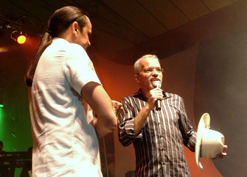 Agora a pouco, o cantor Frank Aguiar chamou o prefeito Edvaldo Nogueira até o palco para lhe agradecer a oportunidade de se apresentar no Forró Caju, parabenizar pela administração da cidade e também para presenteá-lo com um chapéu. Edvaldo agradeceu a iniciativa. Muito obrigado por sua presença e ano que vem, se Deus quiser, você vai estar aqui conosco de novo, disse. Em seguida, o prefeito pediu a Frank que jogasse o chapéu para o público. Ele vai estar melhor nas mãos da população de Aracaju, afirmou Edvaldo Nogueira.
