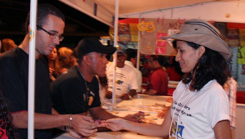 Localizado próximo aos camarotes e ao SAMU, o Ponto da Prevenção mais um ano realiza um papel fundamental no Forró Caju: o de conscientizar os forrozeiros quanto à importância de utilizar o preservativo. Esta noite, representantes da Secretaria Municipal da Saúde, juntamente com o Grupo Homossexual do Bugio (GHB) e do Consórcio Nacional da Juventude, estão distribuindo cerca de 5 mil camisinhas. Apesar do principal público que procura o Ponto ser formado por jovens, não existe distinção de sexo, uma vez que não só os homens, mas também as mulheres são presença constante no local. A distribuição ocorre durante todas as noites da festa e, esse ano, além do preservativo, estão sendo entregues bolsas do Forró Caju, adesivos, além da programação. A coordenadora de Saúde da Mulher, Renata Alves da Silva, lembra da importância de criar um espaço como esse para a prevenção de Doenças Sexualmente Transmissíveis (DST`s). Essa iniciativa da Prefeitura Municipal de Aracaju é fundamental, já que o Forró Caju possui um público jovem, que muitas vezes faz uso de álcool e acaba ficando mais vulnerável. De fato, o Ponto da Prevenção está dando certo, o que pode ser constatado pela grande procura que estamos tendo todas as noites, disse. Elói Silva Ribeiro, mais um jovem a procurar o Ponto da Prevenção, falou que usar o preservativo é algo indispensável. Todos os ano passo por aqui para pegar o meu preservativo, já que ele é fundamental na prevenção de doenças. Dessa forma, todos podem curtir a festa da melhor forma possível, falou.
