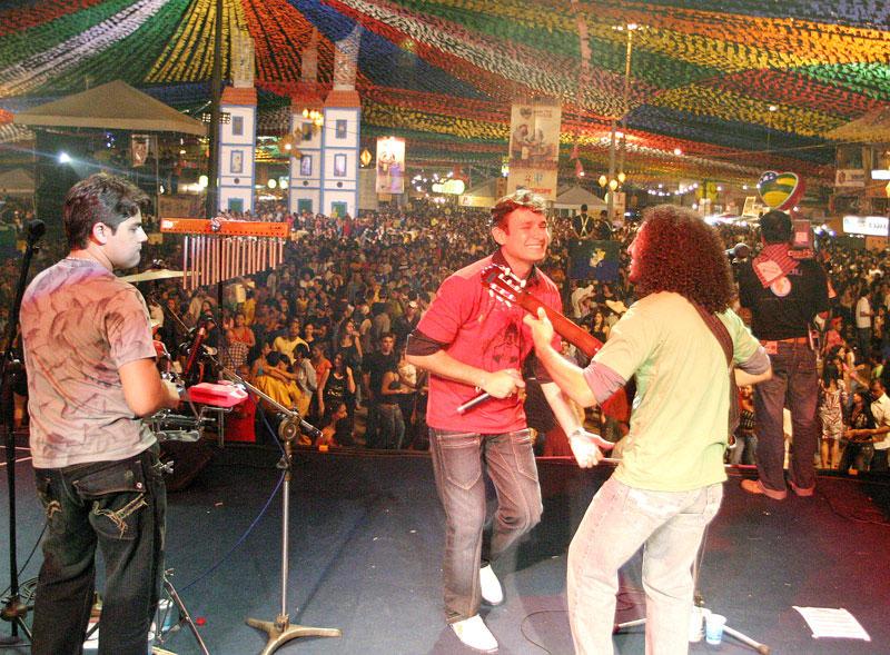A noite está só começando, mas a quantidade de pessoas na praça de eentos Hilton Lopes já impressiona. "Eu nunca vi tanta gente assim", acaba de dizer o cantor do Forró Zé Tramela. Apesar de não ser feriado, dia santo ou fim de semana, os forrozeiros foram atraídos pelas atrações musicais e pelo clima junino do Forró Caju. E se o volume de público impressiona, a animação também. Qualquer música executada pela banda faz a multidão arrastar o pé. Dançando juntas ou separadas, as pessoas não param um só segundo. Pelo visto, a festa e a energia só vão acabar de madrugada.