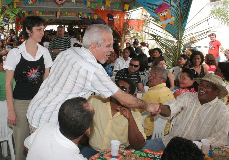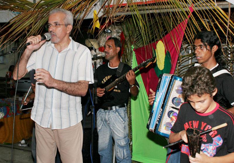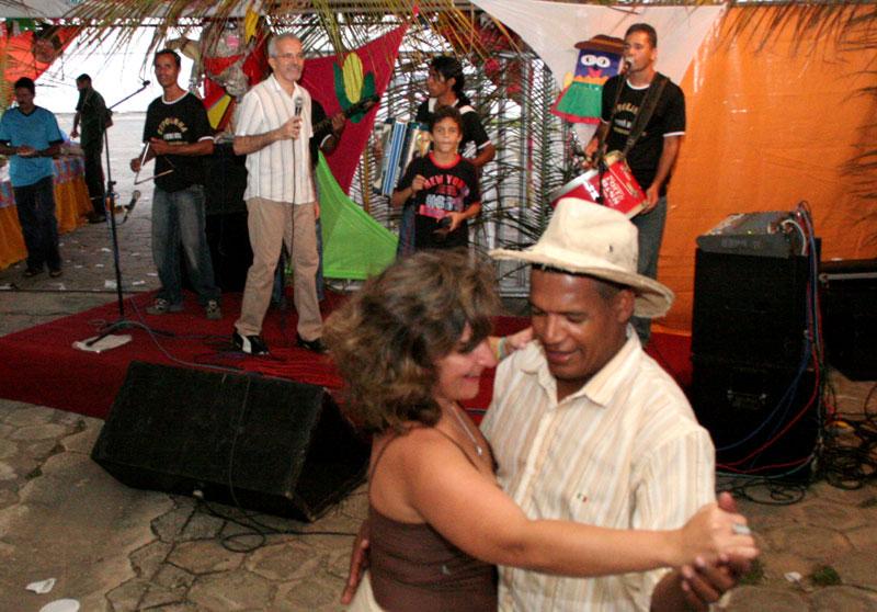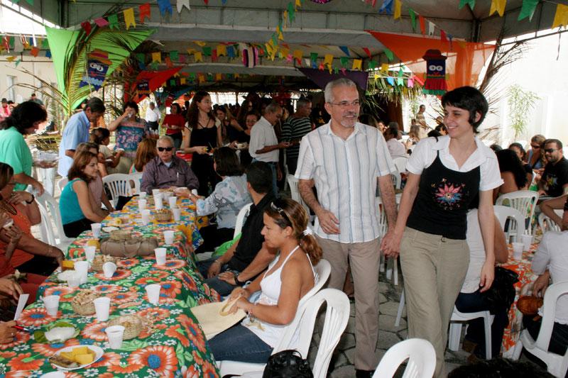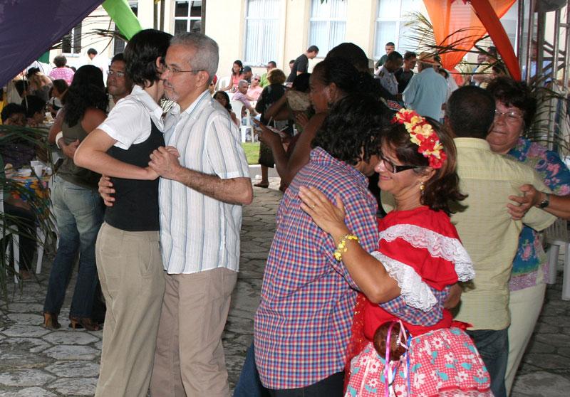 Um colorido arraial foi montado para festejar com os funcionários do Centro Administrativo da Prefeitura de Aracaju, prefeito Aloísio Campos, o Forró no Centro, realizado na tarde de ontem, quarta-feira. O prefeito Edvaldo Nogueira compareceu acompanhado da primeira dama e diretora-presidente da Fundação Aperipê, Indira Amaral, e após cumprimentar secretários e funcionários municipais, foi um dos primeiros a arrastar sua companheira para o arrasta-pé. Cebolinha e Forró Biss se encarregaram do som, embalando os forrozeiros, que tiraram uma ligeira folga do expediente normal nessa quarta-feira para festejar o período mais aguardado do povo nordestino. Vamos desocupar essa cadeira e vem dançar, convidou o cantor. Antes de um farto cardápio nordestino ser servido, a quadrilha ´Renascer´, composta por idosos do bairro São Conrado, fez uma bela e contagiante apresentação. Em seguida o prefeito teve que se ausentar por conta de uma reunião, mas retornou para a festa, cantou, dançou e não deixou de tocar a zabumba, como já está se tornando um costume nas festas juninas do município. Gostaria de dar uma boa tarde a todos e dizer que lamento apenas não ter ficado a festa inteira. Quero agradecer a presença de todos os servidores e secretários do complexo, mas também da secretaria de finanças e da Procuradoria que vieram e também aos vereadores aqui presentes, disse o prefeito. Outra quadrilha presente foi a formada por crianças e adolescentes da Casa Jardim Esperança, que também dançou os ritmos que fazem parte dos festejos juninos no Estado. As apresentações foram trazidas pela Secretaria Municipal de Assistência Social e Cidadania (Semasc). A tarde foi bastante descontraída, com destaque para os recadinhos trocados entre os funcionários e lidos pelo locutor Sidney Souza. Nem os secretários foram poupados. A festa, além de proporcionar um momento de lazer para os servidores da Prefeitura, permite uma maior integração entre os funcionários de todas as secretarias que envolvem o Centro Administrativo, que muitas vezes freqüentam o mesmo local de trabalho, mas não têm a oportunidade de se conhecer melhor. O prefeito Edvaldo Nogueira participou também de outras confraternizações juninas de outros órgãos municipais durante esse mês. Faço questão de participar das confraternizações nesse momento de alegria e descontração dos servidores. Venho aqui trazendo o meu abraço a todos, afirmou o prefeito. O Forró no Centro foi organizado pela Secretaria Municipal de Administração (Semad) e integrou as demais secretarias componentes do complexo. Confira cobertura on line do Forró Caju 2007