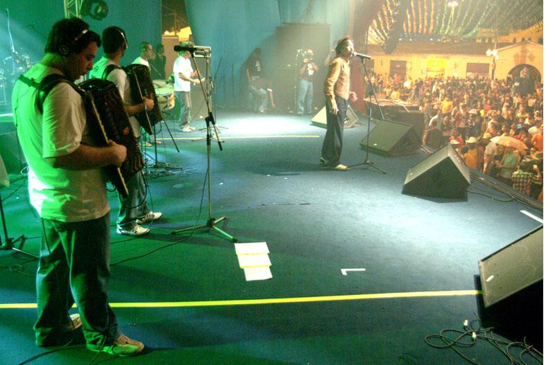 Entoando com sua voz marcante um solo que lembra o cantar do vaqueiro nordestino, Santanna Cantador, começou há poucos instantes a se apresentar para o público, que já lota a praça de eventos do Forró Caju. O xote e o baião estão comandando os passos da multidão. Assim como o Quinteto Violado, Santanna promove o resgate das origens musicais nordestinas. Com tanta tradição, os forrozeiros não param nem um segundo.