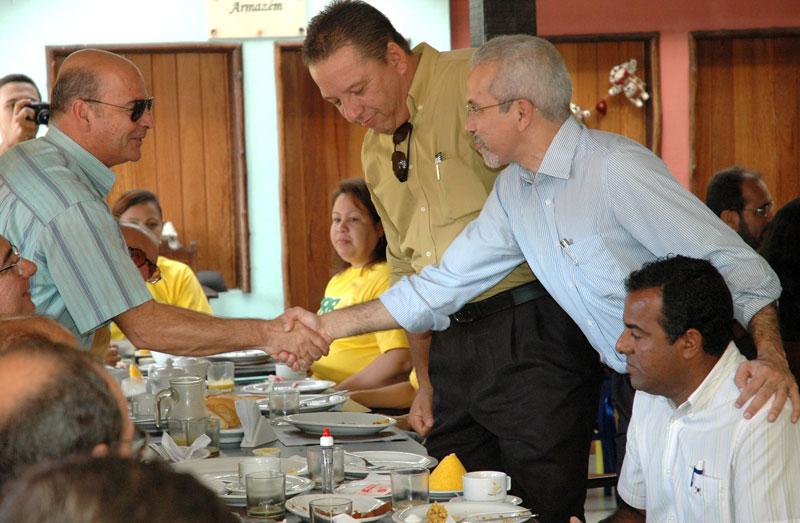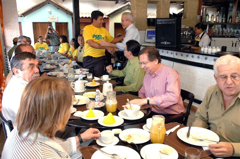 O prefeito Edvaldo Nogueira participou hoje, quinta-feira, do café da manhã em comemoração à filiação do ex-deputado federal Pastor Heleno Silva ao Partido Republicano Brasileiro (PRB). O evento marcou também a formalização da liderança do ex-deputado frente à sigla, surgida no Brasil em 2005, mas fundada em Sergipe apenas este ano. Durante a comemoração, o prefeito destacou a importância dos partidos políticos para a democracia brasileira. Os partidos são fundamentais. Eu acredito que eles precisam ser fortalecidos e, sobretudo, precisam construir suas identidades próprias, com projetos bem definidos. Acredito também que a política tem que ser um meio de debate de idéias, opiniões, posições, destacou Edvaldo Nogueira. Ele disse ainda que, por valorizar a pluralidade partidária, ficava sempre satisfeito ao ver uma nova sigla surgir, crescer e se solidificar como instrumento de defesa dos direitos e dos interesses dos cidadãos. Para o Pastor Heleno, o papel dos partidos políticos é essencial para o desenvolvimento de políticas públicas voltadas às mais diversas áreas. Cada um defende suas bandeiras. Alguns dão maior ênfase ao meio ambiente, outros à questão social, à autonomia dos municípios, entre outros temas. Cada partido tem sua visão e isso é muito bom, ressaltou. Segundo ele, o PRB, que compõe o bloco de apoio aos governos federal, estadual e municipal, vai dar toda a ajuda ao prefeito Edvaldo Nogueira na administração da capital. Agradeço a colaboração que o Pastor Heleno nos deu até aqui e tenho certeza que agora no PRB, ele e seus correligionários, a exemplo do Pastor Jony, vão continuar contribuindo com nosso governo, declarou o prefeito. Participaram também do café da manhã os secretários municipais Sílvio Santos (Governo) e Rômulo Rodrigues (Participação Popular); o vereador recém filiado ao PRB, Pastor Jony; lideranças políticas do interior do Estado, membros da Igreja Universal do Reino de Deus e profissionais da imprensa.