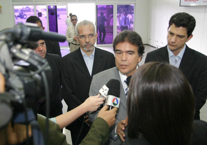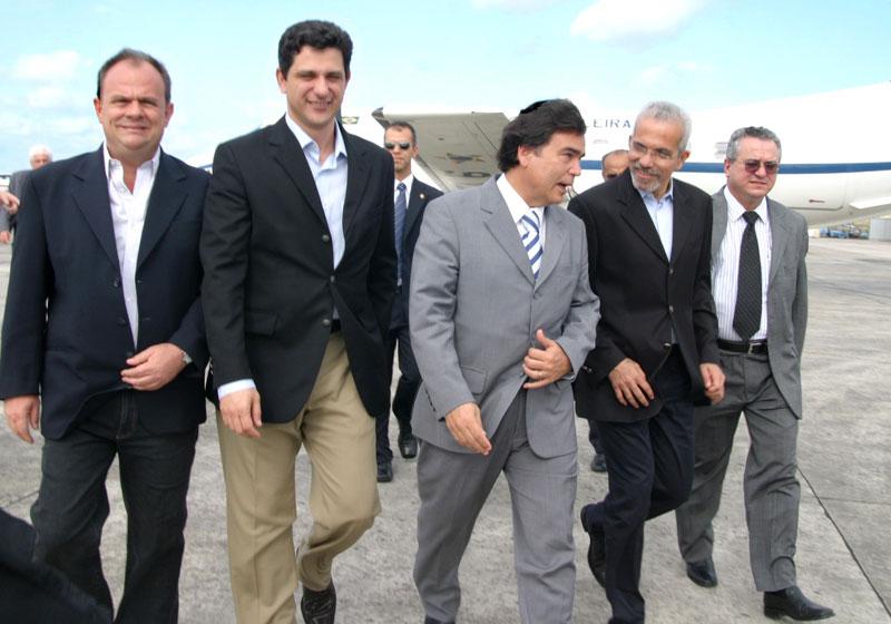 O prefeito de Aracaju, Edvaldo Nogueira, e o secretário municipal de saúde, Marcos Ramos, recepcionaram o ministro da Saúde, José Gomes Temporão, em sua chegada à Aracaju, no início da tarde de hoje, quarta-feira. Também estiveram presentes o vice-governador Belivaldo Chagas, o secretário estadual de Saúde, Rogério Carvalho, o prefeito de Canindé do São Francisco, Orlando Andrade, o secretário de saúde de Canindé e presidente do Conselho de Secretários Municipais de Saúde, Murilo Andrade, além de outros secretários estaduais. O objetivo da minha vinda, como em outros Estados da região Nordeste, é discutir sobre o Sistema Único de Saúde (SUS), seus desafios, avanços, as dificuldades e o que precisa ser feito para aperfeiçoar. É importante para o ministro ouvir do próprio Estado como é que os gestores e a sociedade percebem o Sistema. Além disso, vim trazer algumas notícias de aumento do repasse de recursos financeiros para o Estado de Sergipe, tanto da tabela de procedimentos do SUS, quanto para o teto financeiro da média e alta complexidade, afirmou Temporão, ressaltando que a cidade de Aracaju possui um serviço de saúde bem estruturado. O prefeito Edvaldo Nogueira destacou a importância da vinda do ministro à capital. Como o próprio ministro afirmou, Aracaju conta com um sistema de saúde bem organizado. Mesmo com problemas e dificuldades, a saúde está melhor do que na maioria das capitais brasileiras. Nós montamos um grande programa de saúde da família, duplicamos a quantidade de equipes - de 62 para 128 -, e quase multiplicamos por 10 os recursos próprios do município que são aplicados na saúde. Fizemos um grande avanço aqui em Aracaju e, como esse sistema cresceu, foi ampliando, precisa de novos financiamentos, e é isso que o ministro vem aqui trazer hoje. É um momento importante para Aracaju e Sergipe; e temos certeza que essa vinda do ministro vem consolidar esse sistema, apontou o prefeito.