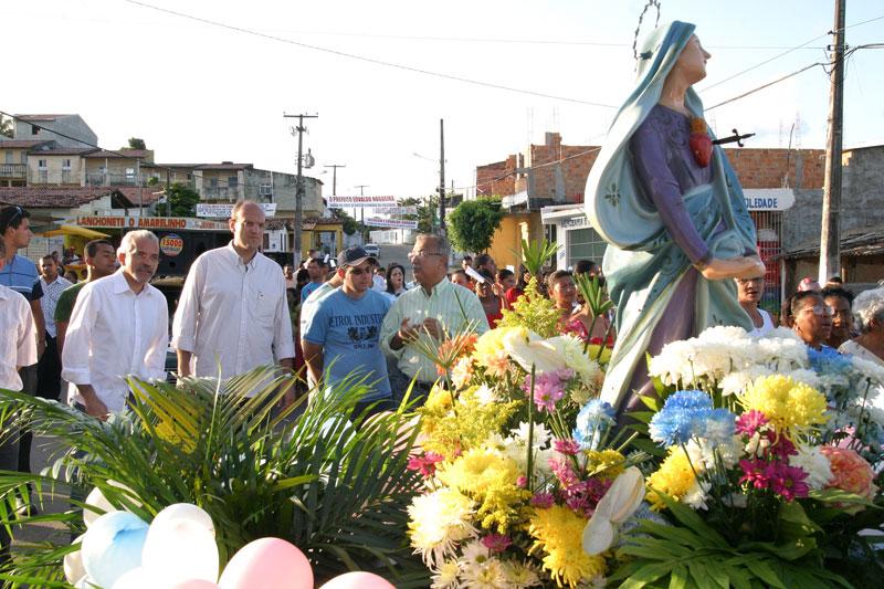 Foi ao som de cânticos e preces que crianças, adolescentes, adultos e idosos percorreram as ruas do bairro Soledade, em Aracaju, acompanhando a procissão de Nossa Senhora da Soledade, na tarde de ontem, domingo. Entre eles, o prefeito Edvaldo Nogueira, que acompanhou também a bênção do santíssimo, realizada pelo arcebispo metropolitano, Dom José Palmeira, em frente à paróquia local. "O povo brasileiro é religioso. Os bairros têm as festas das padroeiras das paróquias, das quais eu tenho buscado participar. Acho muito importante estar junto dos fiéis nesse momento de agradecer a Deus pelas graças conquistadas e pedir também paz, amor, felicidade e que ele ilumine a todos nós para que a gente possa trabalhar cada vez mais para melhorar a vida da população", afirmou. O prefeito falou ainda que é uma oportunidade de identificar in loco as necessidades da população. "Também é um momento de manter contato com as pessoas, principalmente das áreas mais afastadas, como é o caso do bairro Soledade. Eu venho ver de perto o problema do bairro para buscar melhorar a vida da comunidade", apontou. Também participaram da procissão o secretário de Finanças de Aracaju, Jeferson Passos; os vereadores Emanuel Nascimento (líder do prefeito na Câmara Municipal de Aracaju), Dr. Gonzaga e Fábio Henrique; além do deputado federal Jackson Barreto.