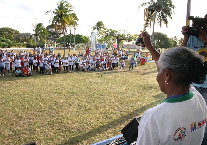 Os atletas mais que especiais da terceira idade, que participaram da II Olimpíada Geração Saúde do Idoso, realizada pela Prefeitura de Aracaju, por meio da Secretaria Municipal de Assistência Social e Cidadania (Semasc), receberam medalhas e troféus na tarde de hoje, sábado, durante o evento `Primavera de Todos´, no parque da Sementeira. O prefeito de Aracaju, Edvaldo Nogueira, entregou as premiações juntamente com a secretária municipal de Assistência Social e Cidadania, Rosária Rabelo, e a presidente da Fundação Municipal de Cultura, Turismo e Esportes (Funcaju), Lucimara Passos. Os vencedores das 11 modalidades realizadas fizeram questão de comparecer para receber o reconhecimento por sua determinação durante os cinco dias da competição. Participaram 560 atletas dos 23 grupos de convivência do idoso existentes nos Centros de Referência da Assistência Social (CRAS) distribuídos pela cidade. Durante a premiação, o prefeito Edvaldo Nogueira parabenizou todos os participantes, independente de medalha, pela determinação e garra durante as competições. Hoje estamos aqui vivendo um momento muito importante para todos os que participaram das competições. A Prefeitura de Aracaju tem um compromisso de cada vez mais melhorar a qualidade de vida das pessoas e vocês sabem viver, são um exemplo de motivação, afirmou. A medalhista na modalidade dança de salão, Lenita dos Santos Cruz, não se continha de tanta alegria. Foi a primeira vez que participei e achei uma grande oportunidade para a nossa idade. Receber minha medalha das mãos do prefeito foi uma emoção tão grande, que eu nem sei descrever, contou entusiasmada. Não menos animada estava a atleta Maria Edna Araújo, do CRAS do bairro Porto Dantas, vencedora nas modalidades futsal e vôlei. Achei ótimo, adorei e próximo ano eu quero concorrer de novo, falou a vencedora. A secretária Rosária Rabelo resumiu o sentimento de todos que participaram de alguma maneira do evento. Esse evento na verdade já é uma tradição e acho que é uma demonstração de que a terceira idade é vida. Hoje é a grande coroação do que foram as olimpíadas para todos os que participaram e acho que essa premiação, no primeiro dia da primavera, demonstra o estado de espírito que é essa estação, a partir da alegria, do vigor da terceira idade, disse. Também foram premiados os Centros de Referência com maior número de vencedores: 1º colocado - CRAS Maria Pureza; 2º CRAS - Porto Dantas; e 3º colocado - Grupo de Convivência do Sol Nascente. Estiveram presentes no evento o vereador Emanuel Nascimento (líder do prefeito na Câmara) e os secretários municipais Jeferson Passos (Finanças), Fabiana Pinho (Gabinete), Rômulo Rodrigues (Participação Popular), Carlos Cauê (Comunicação Social) e coronel Magno (Guarda Municipal).