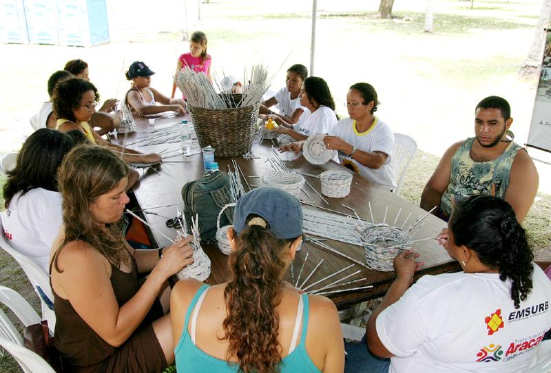 Na sombra de árvores e sobre esteiras de palha, centenas de crianças, adolescentes e adultos participam durante todo o dia de hoje, sábado, das oficinas oferecidas na Primavera de Todos, evento realizado pela Prefeitura Municipal de Aracaju, no Parque Augusto Franco (Sementeira), para marcar a chegada da nova estação. Os estandes também contam com toda a estrutura de mesas, cadeiras e materiais para as pessoas se divertirem e aprenderem em contato com a natureza. A reciclagem de materiais é a palavra de ordem na produção de peças de artesanato ecologicamente correto. Artistas plásticos convidados ou que integram projetos da PMA, por meio da Fundação Municipal de Cultura, Turismo e Esporte (Funcaju), ensinam a produzir desde brinquedos e peças de decoração até móveis. Na oficina Tudo Encaixa, por exemplo, os participantes aprendem a montar diversas formas aproveitando garrafas peti, inclusive sofá e puffs. Papel e papelão usados também deixam de ser lixo para virar vasos e cestas, entre outras peças, nas oficinas de Reciclagem. Com algumas dobras, o papel também se converte em animais e flores através da milenar técnica chinesa de Origami. Tecidos, espuma e papelão surgem personagens na oficina de Fantoches. Fios de cobre e ferro retorcidos também ganha novas formas e é transformado em representações humanas e de objetos como bicicletas, carros ou o que a imaginação permitir, na oficina de Arte com Metal. Nossa missão é dar as ferramentas e fazer pessoas de todas as idades liberarem sua criatividade. A proximidade com a natureza inspira ainda mais os participantes, opina o estudante de Artes Visuais Júnior Curvelo Santana, que ministrou a oficina de Origami. A habilidade e a sensibilidade de cada um cria objetos novos e bonitos e ajudam a transformar materiais que iriam para o lixo em coisas úteis e agradáveis ao olhar, defende a presidente da Funcaju, Lucimara Passos. O esporte e os jogos também fazem parte da programação do Primavera de Todos. Foram montadas mesas para a xadrez, dama e dominó, onde os visitantes são estimulados a participarem. O mesmo acontece com nos campos e quadras ao ar livre de vôlei, futebol, basquete e futsal. As atividades ainda incluem outras atividades de recreação e o resgate de brincadeiras, como a bola de gude, o jogo de argolas, a corrida de saco e o queimado. Todos os eventos tiveram início às 9 horas e seguem durante todo o dia. A PMA forneceu todos os materiais e a estrutura. O público tem acesso gratuito a todos os espaços, sem precisar fazer inscrição.