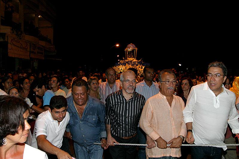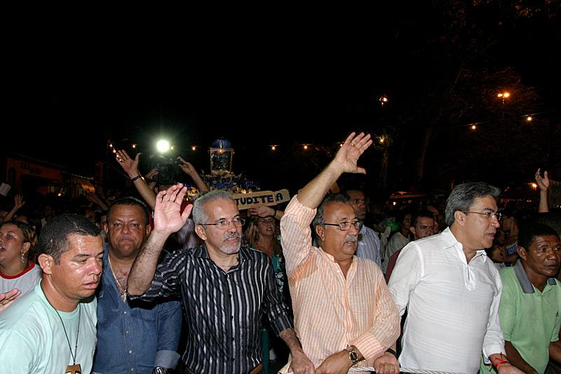 Aconteceu ontem, sexta-feira, no conjunto Bugio, a procissão de Nossa Senhora Aparecida, padroeira do Brasil. A solenidade contou com a participação do prefeito de Aracaju, Edvaldo Nogueira. Juntamente com milhares de fiéis, o prefeito acompanhou todo o cortejo, que passou por diversas ruas do bairro, ao comando do padre Cássio. Também estiveram presentes o governador do Estado, Marcelo Déda; o presidente da Empresa Municipal de Obras e Urbanização (Emurb), Valmor Bezerra; o líder da administração municipal na Câmara de Vereadores, Emanuel Nascimento; o deputado federal Jackson Barreto; e o vereador Fábio Henrique. Devota da santa, Marluce de Fátima contou que a Prefeitura de Aracaju contribuiu para que a festividade acontecesse. O prefeito cedeu palco, iluminação, a limpeza das ruas, colocou guardas de trânsito para organizar os veículos nas ruas e, não satisfeito com o que fez, ligou para nosso padre e perguntou se havia a necessidade de mais alguma coisa. Todos da comunidade estão muito agradecidos a ele, afirmou uma das organizadoras do evento. Padre Cássio também reconheceu o apoio da Prefeitura. Quero agradecer o carinho e o apoio do prefeito Edvaldo Nogueira em participar dessa festa; ele entende que a comunhão com o Cristo é a formação dos homens de boa fé, observou o pároco. Na ocasião, o padre rezou juntamente com o povo uma Ave-Maria para abençoar o prefeito e o governador. Meus pais moraram aqui durante 20 anos; meu filho também morou aqui; tenho um carinho especial pelo Bugio. Todos os anos venho à procissão, afinal, como todo brasileiro, sou devoto de Nossa Senhora Aparecida. Essa é a maior festa religiosa da cidade e é também a procissão mais bonita de Aracaju, ressaltou o prefeito. Durante a realização, Edvaldo confidenciou aos moradores do Conjunto que, a partir do próximo mês de novembro, irá realizar obras de pavimentação no loteamento Beira Mar. Vamos deixar o Conjunto ainda mais lindo, afirmou o prefeito, que após o término da procissão, assistiu ao show do padre Cássio.