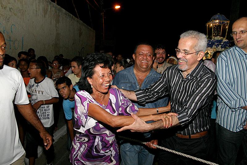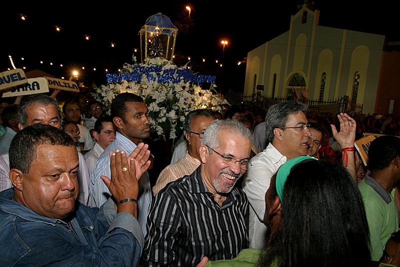 Aconteceu na última sexta-feira, dia 12, no conjunto Bugio, a procissão de Nossa Senhora Aparecida, padroeira do Brasil. A solenidade contou com a participação do prefeito de Aracaju, Edvaldo Nogueira. Juntamente com milhares de fiéis, o prefeito acompanhou todo o cortejo, que passou por diversas ruas do bairro, ao comando do padre Cássio. Também estiveram presentes o governador do Estado, Marcelo Déda; o presidente da Empresa Municipal de Obras e Urbanização (Emurb), Valmor Bezerra; o líder da administração municipal na Câmara de Vereadores, Emanuel Nascimento; o deputado federal Jackson Barreto; e o vereador Fábio Henrique. Devota da santa, Marluce de Fátima contou que a Prefeitura de Aracaju contribuiu para que a festividade acontecesse. O prefeito cedeu palco, iluminação, a limpeza das ruas, colocou guardas de trânsito para organizar os veículos nas ruas e, não satisfeito com o que fez, ligou para nosso padre e perguntou se havia a necessidade de mais alguma coisa. Todos da comunidade estão muito agradecidos a ele, afirmou uma das organizadoras do evento. Padre Cássio também reconheceu o apoio da Prefeitura. Quero agradecer o carinho e o apoio do prefeito Edvaldo Nogueira em participar dessa festa; ele entende que a comunhão com o Cristo é a formação dos homens de boa fé, observou o pároco. Na ocasião, o padre rezou juntamente com o povo uma Ave-Maria para abençoar o prefeito e o governador. Meus pais moraram aqui durante 20 anos; meu filho também morou aqui; tenho um carinho especial pelo Bugio. Todos os anos venho à procissão, afinal, como todo brasileiro, sou devoto de Nossa Senhora Aparecida. Essa é a maior festa religiosa da cidade e é também a procissão mais bonita de Aracaju, ressaltou o prefeito. Durante a realização, Edvaldo confidenciou aos moradores do Conjunto que, a partir do próximo mês de novembro, irá realizar obras de pavimentação no loteamento Beira Mar. Vamos deixar o Conjunto ainda mais lindo, afirmou o prefeito, que após o término da procissão, assistiu ao show do padre Cássio.